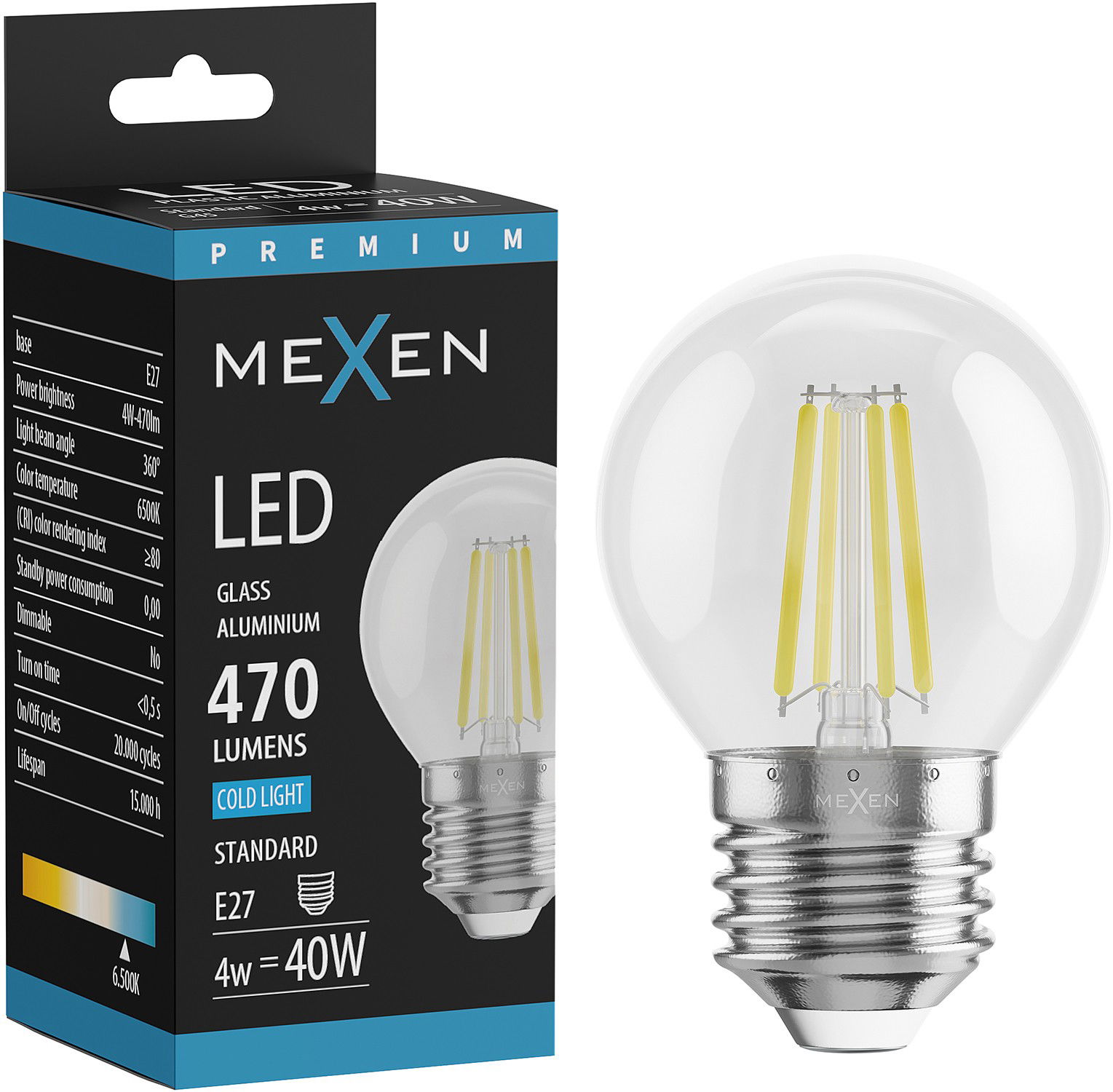Mexen Vintis LED siūlo lemputė E27, G45, 4W, Šalta - 6500K, 470 lm, skaidri - L156-E27-0465-00