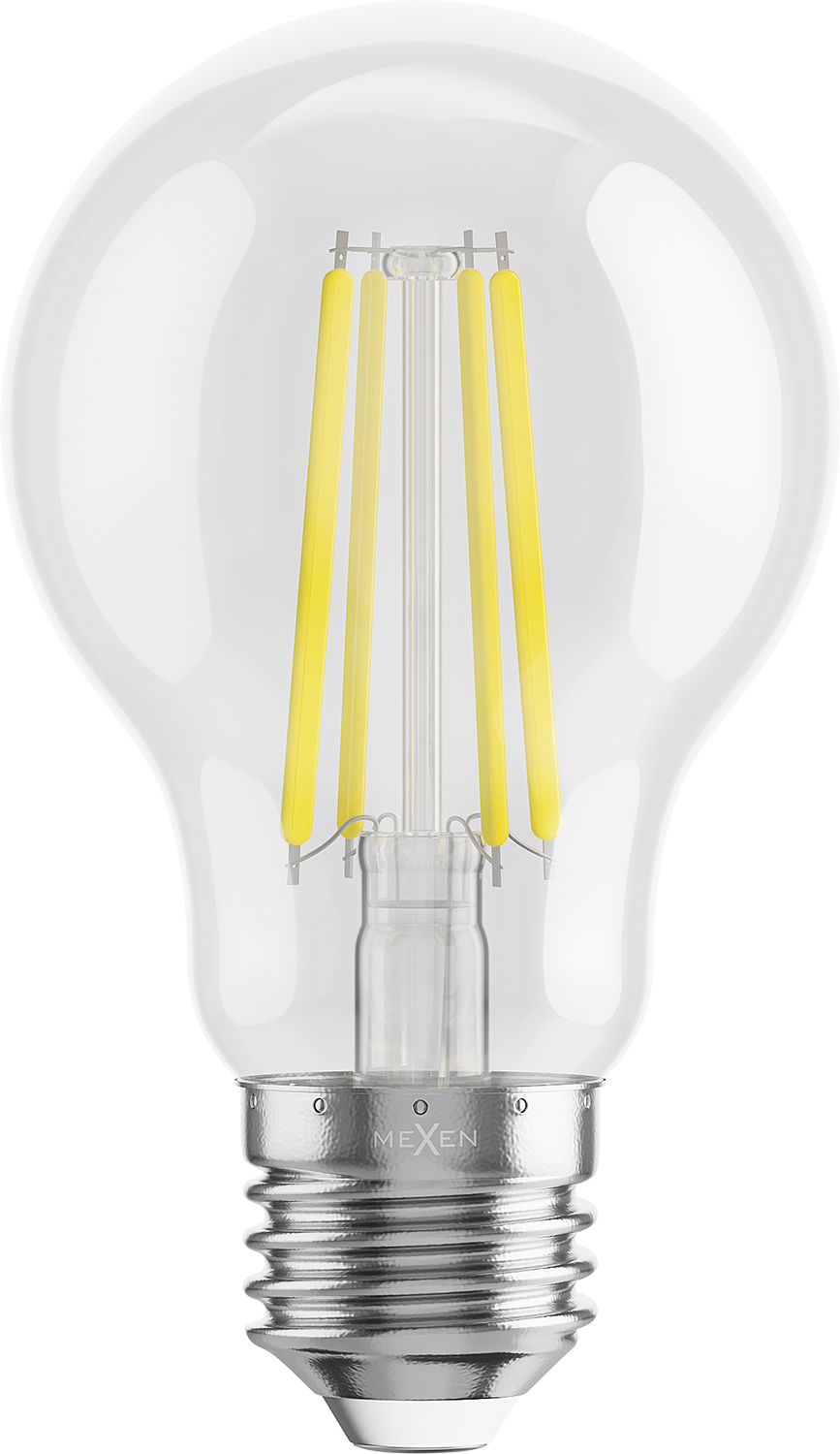 Mexen Vintis LED siūlelių lemputė E27, A60, 8W, Šalta - 6500K, 1055 lm, skaidri - L150-E27-0865-00