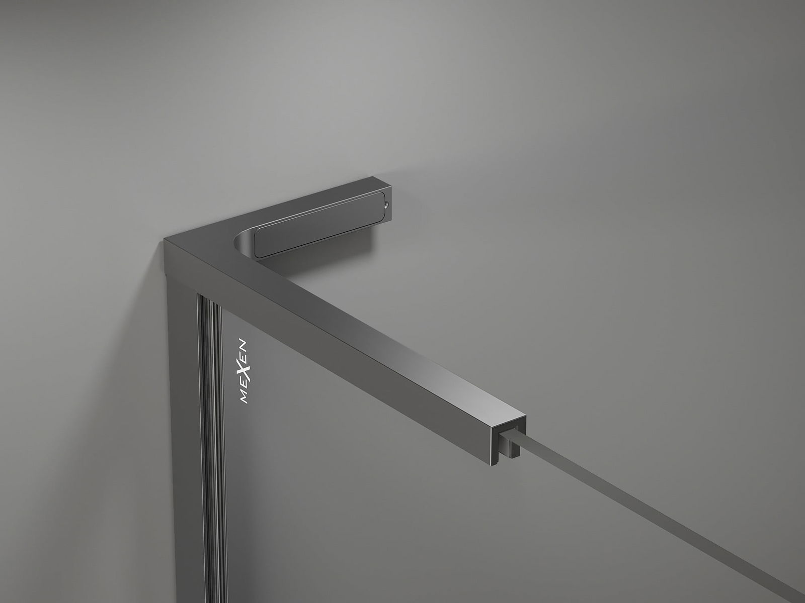 Mexen laikiklis dušo sienelei, chromas siūlo išskirtinį patvarumą dėl nerūdijančio plieno konstrukcijos. Turi elegantišką chromuotą spalvą, kuri tinka šiuolaikinėms vonioms. Maksimalus laikiklio ilgis yra 150 cm, su galimybe apipjauti iki reikiamo ilgio, kas užtikrina visišką lankstumą montuojant. Skirtas stiklui, kurio storis 6-8 mm, laikiklis montuojamas ant kaiščių, kas užtikrina stabilumą ir lengvą montavimą.