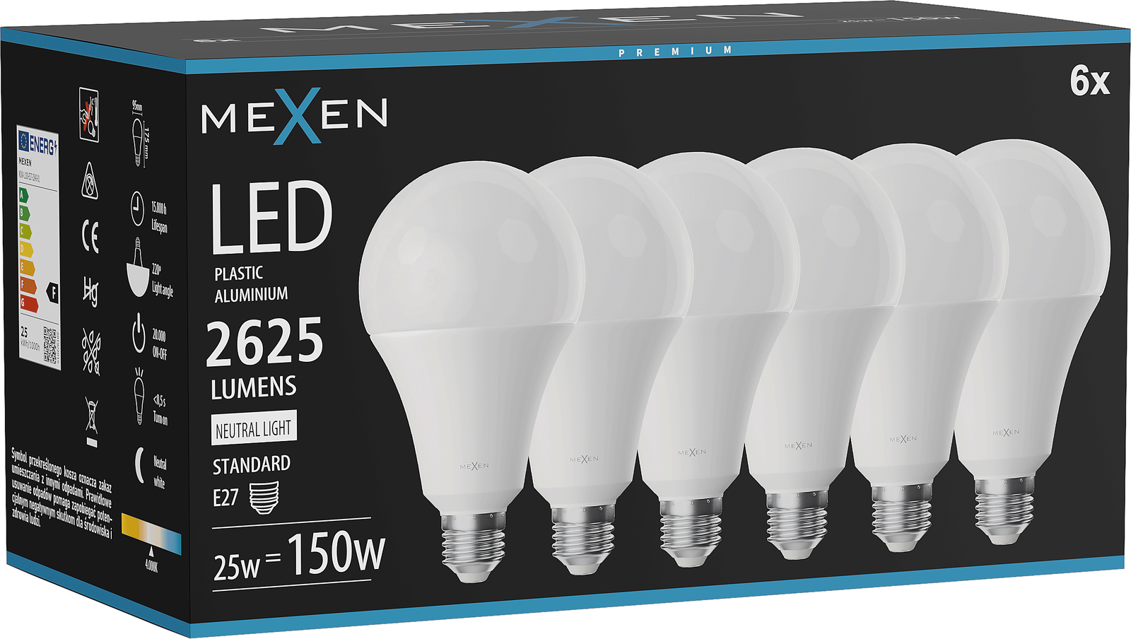 Mexen Nova 6x LED lemputė E27, A95, 25W, Neutrali - 4000K, 2625 lm - L100-E27-2540-01x06