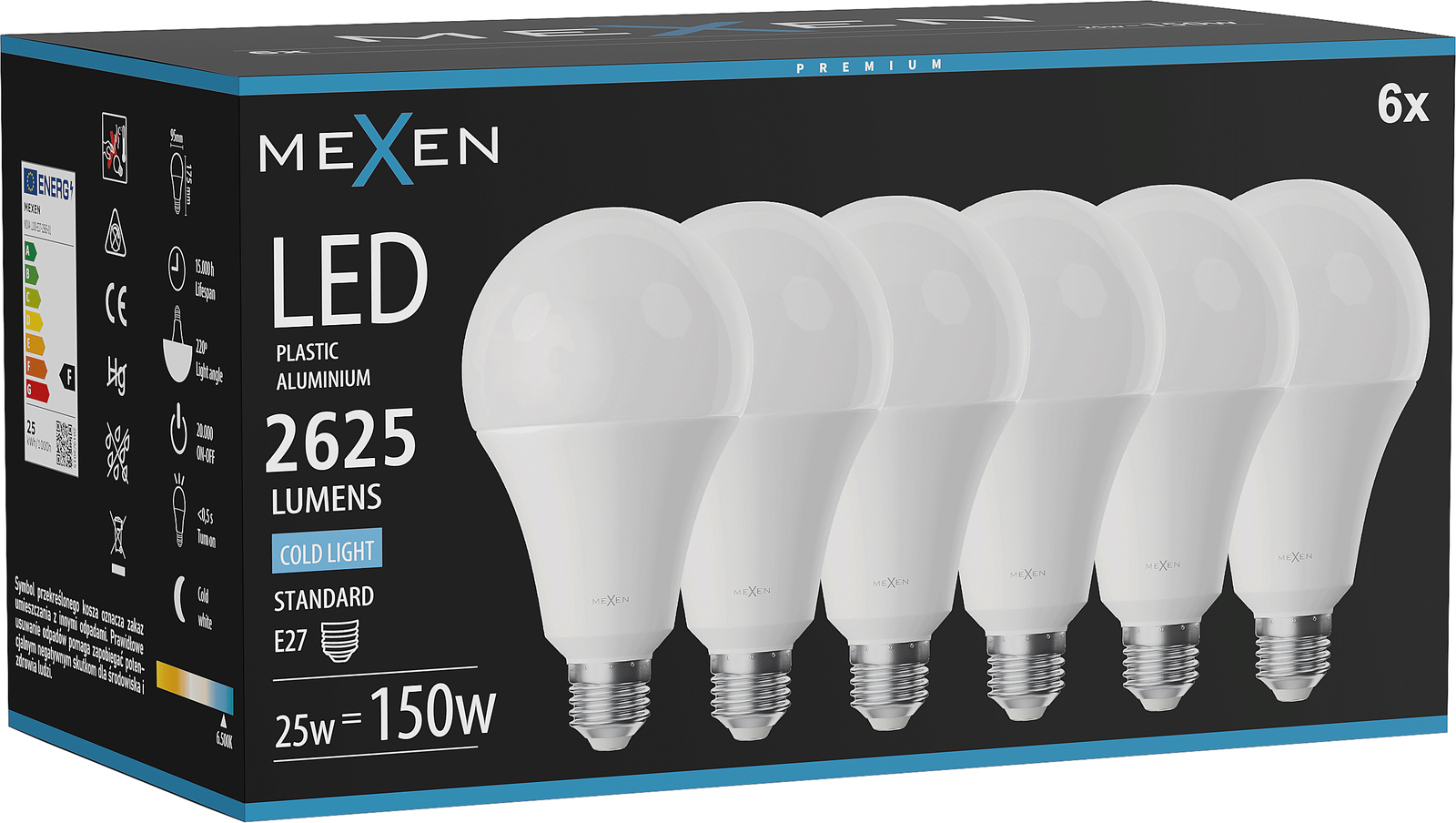 Mexen Nova 6x LED lemputė E27, A95, 25W, šaltai balta - 6500K, 2625 lm - L100-E27-2565-01x06