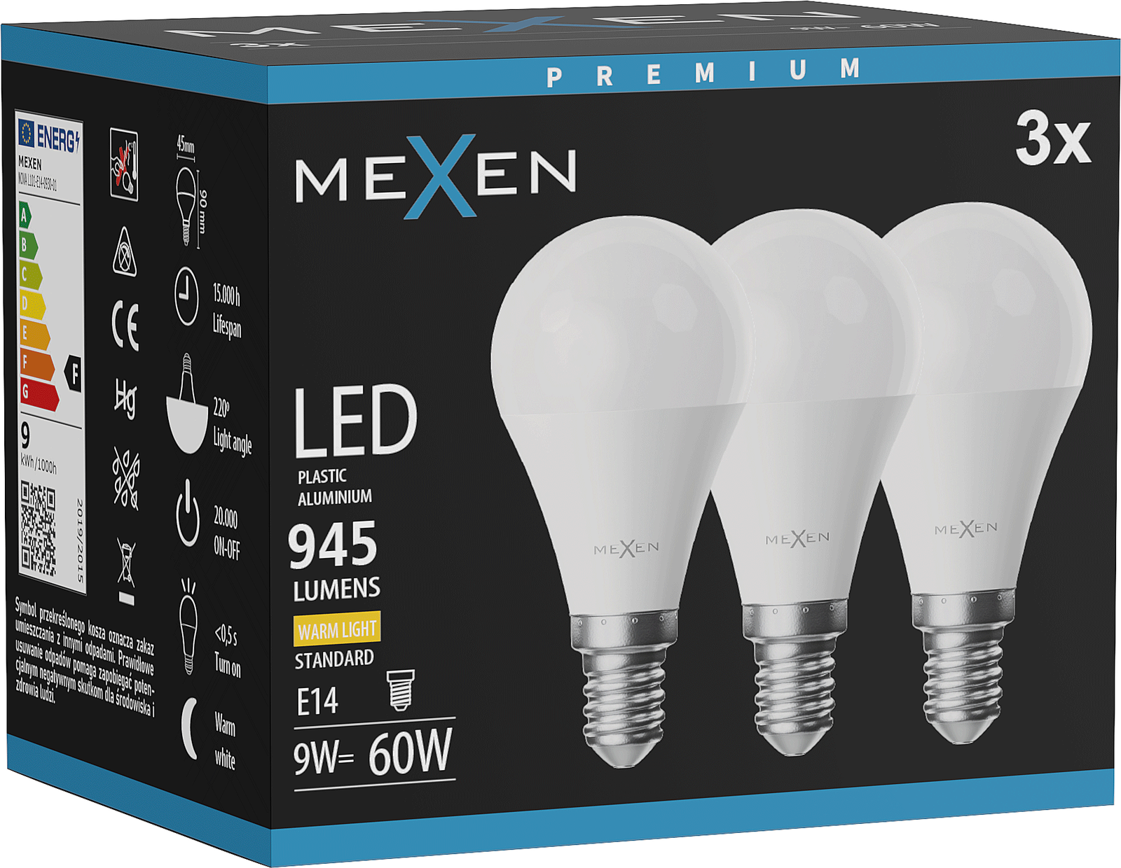 Mexen Nova 3x LED lemputė E14, G45, 9W, Šilta - 3000K, 945 lm - L101-E14-0930-01x03