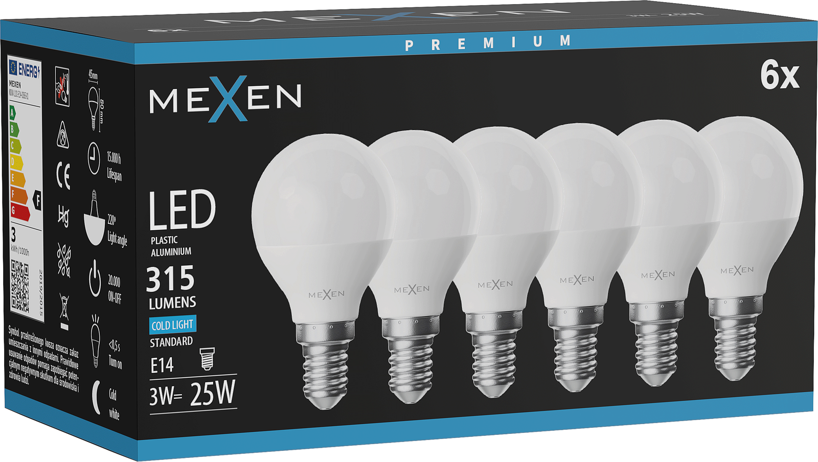 Mexen Nova 6x LED lemputė E14, G45, 3W, Šalta - 6500K, 315 lm - L101-E14-0365-01x06