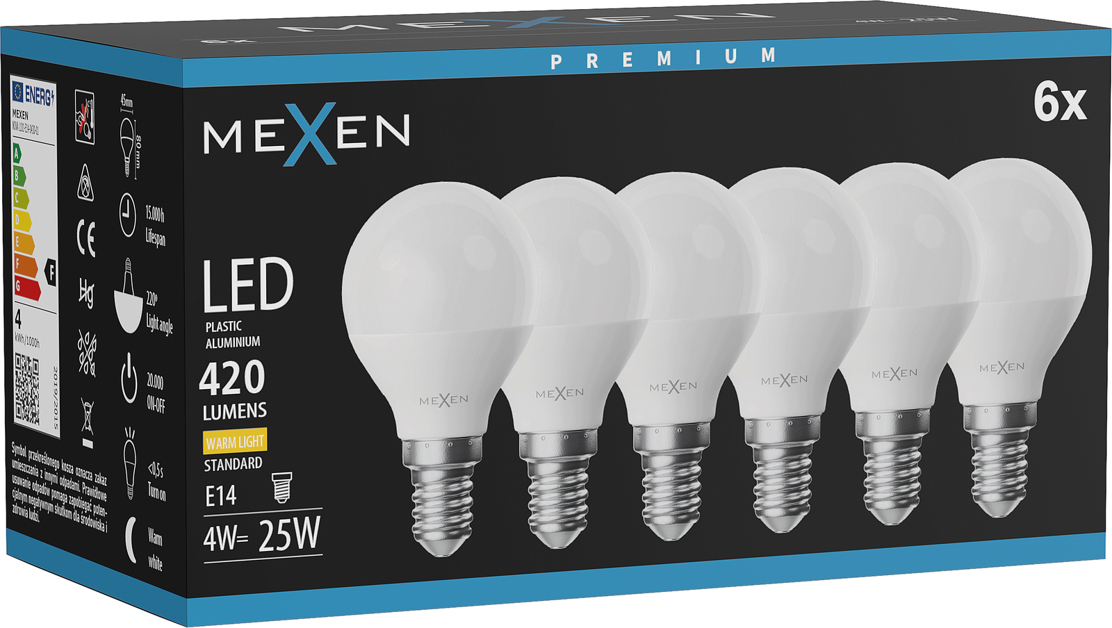 Mexen Nova 6x LED Lemputė E14, G45, 4W, Šilta - 3000K, 420 lm - L101-E14-0430-01x06