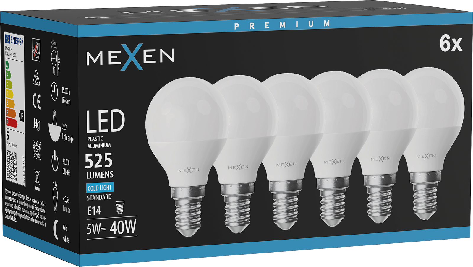 Mexen Nova 6x LED lemputė E14, G45, 5W, Šalta - 6500K, 525 lm - L101-E14-0565-01x06