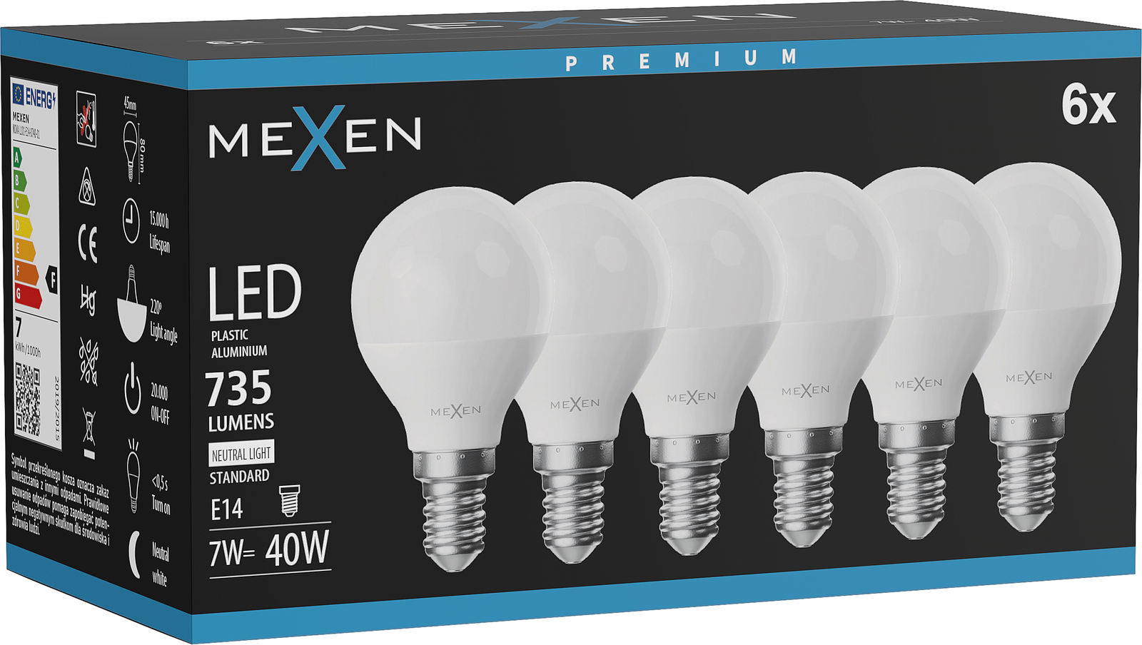 Mexen Nova 6x LED lemputė E14, G45, 7W, Neutralus - 4000K, 735 lm - L101-E14-0740-01x06