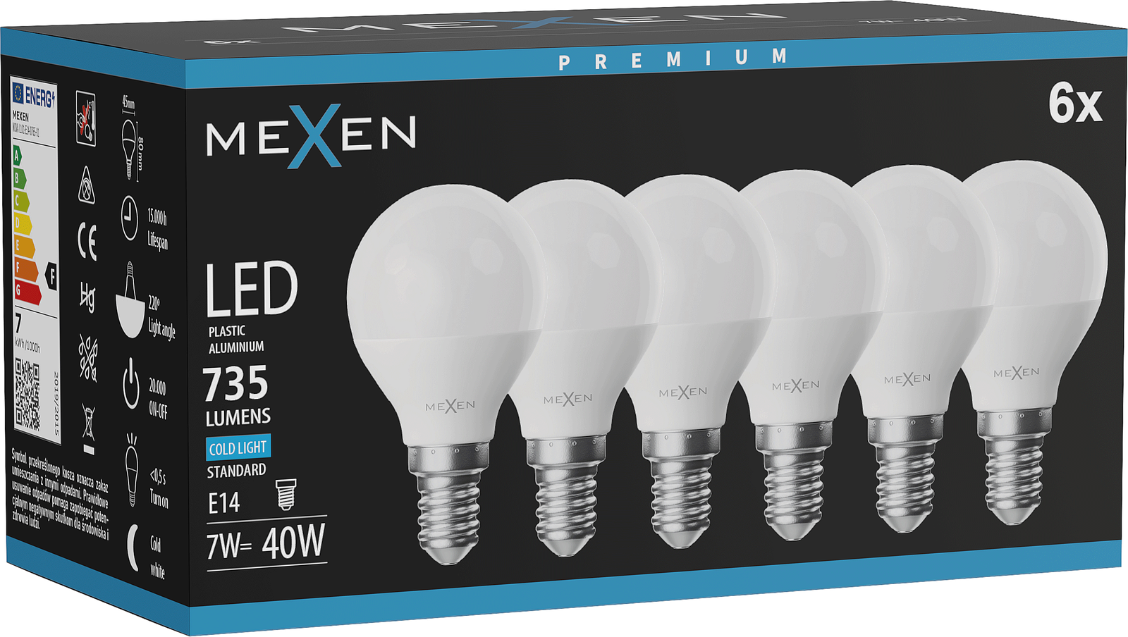 Mexen Nova 6x LED lemputė E14, G45, 7W, Šalta - 6500K, 735 lm - L101-E14-0765-01x06