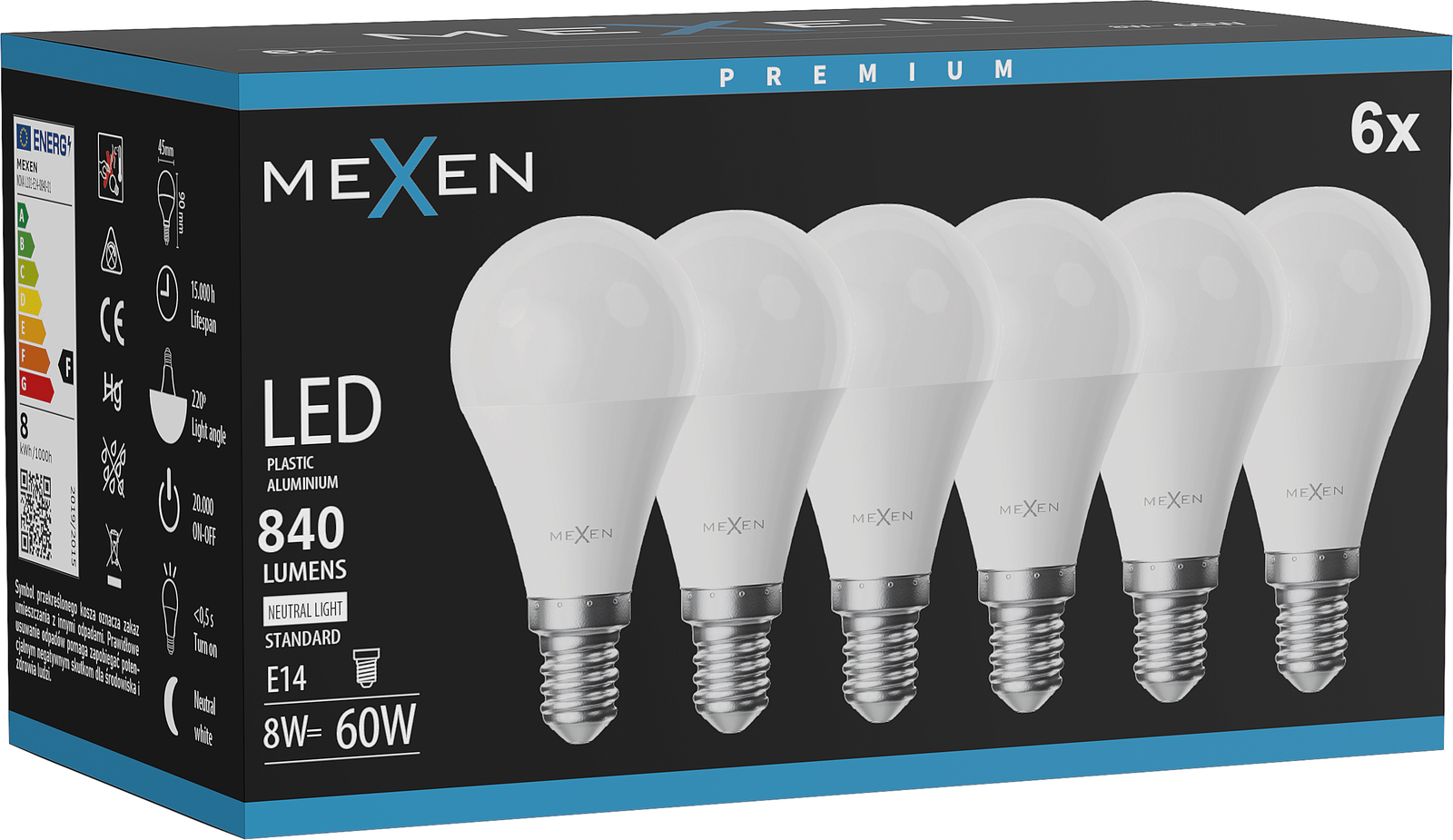 Mexen Nova 6x LED lemputė E14, G45, 8W, Neutrali - 4000K, 840 lm - L101-E14-0840-01x06
