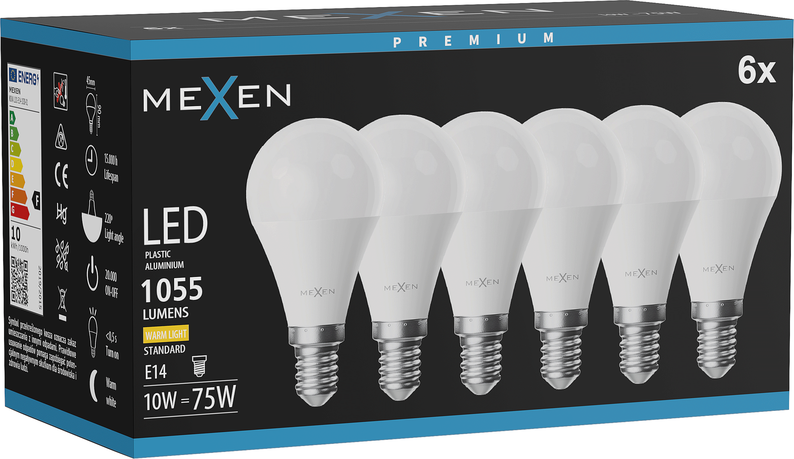 Mexen Nova 6x LED lemputė E14, G45, 10W, Šilta - 3000K, 1055 lm - L101-E14-1030-01x06
