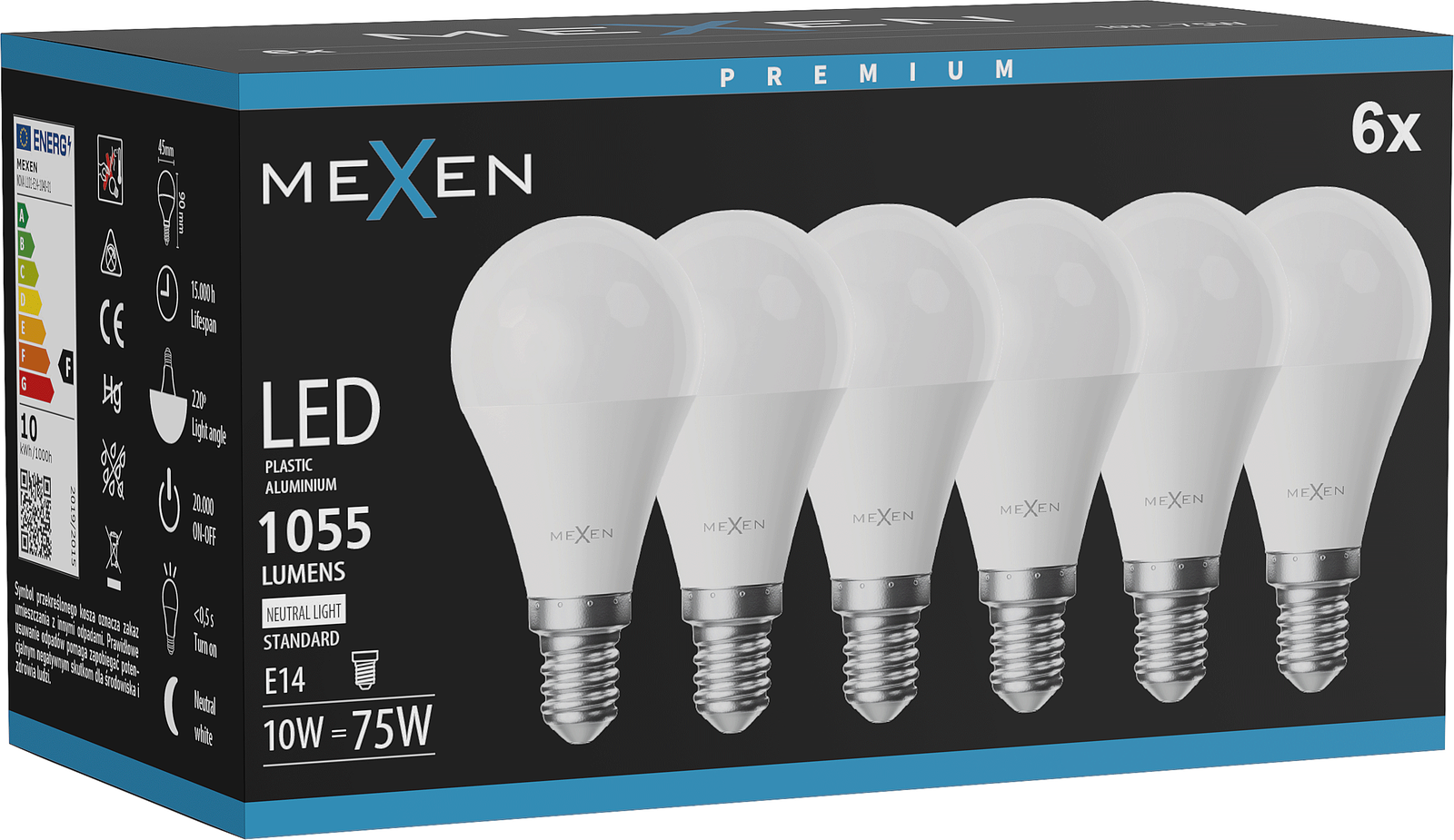 Mexen Nova 6x LED lemputė E14, G45, 10W, Neutrali - 4000K, 1055 lm - L101-E14-1040-01x06