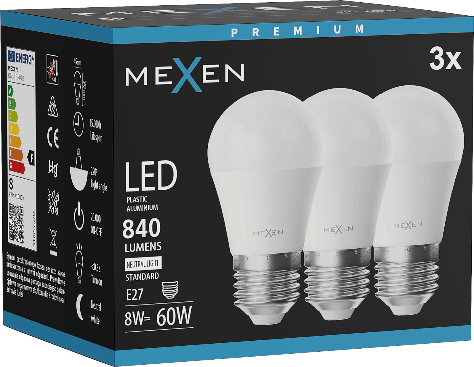 Mexen Nova 3x LED lemputė E27, G45, 8W, Neutralus - 4000K, 840 lm - L101-E27-0840-01x03