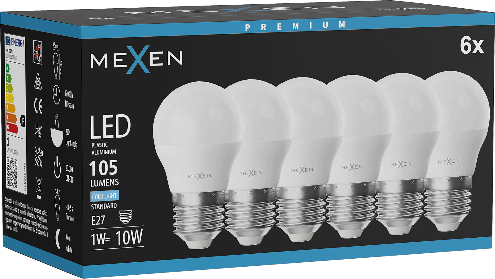 Mexen Nova 6x LED lemputė E27, G45, 1W, Šalta - 6500K, 105 lm - L101-E27-0165-01x06