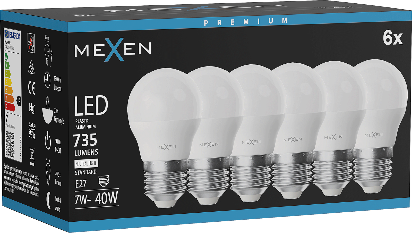 Mexen Nova 6x LED lemputė E27, G45, 7W, Neutrali - 4000K, 735 lm - L101-E27-0740-01x06