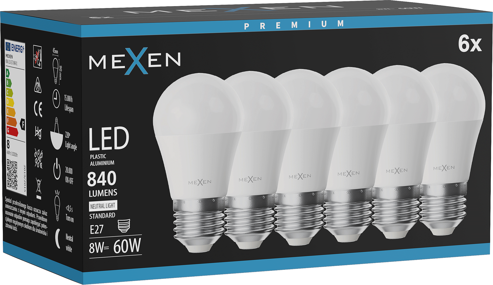Mexen Nova 6x LED lemputė E27, G45, 8W, Neutrali - 4000K, 840 lm - L101-E27-0840-01x06