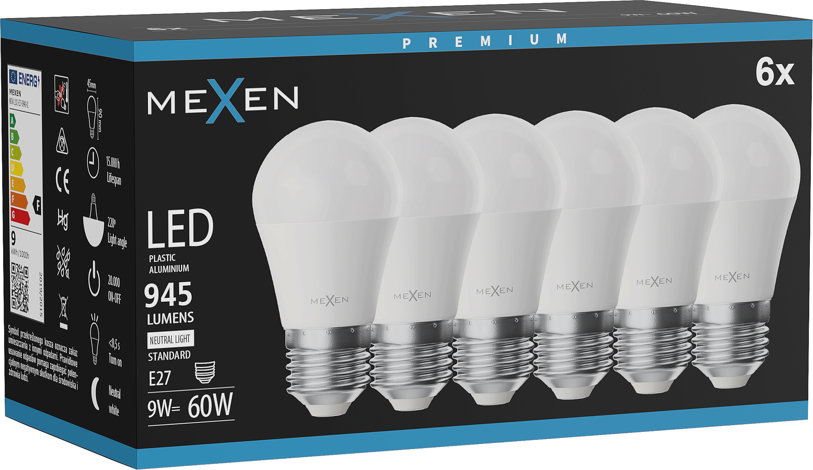 Mexen Nova 6x LED lemputė E27, G45, 9W, Neutrali - 4000K, 945 lm - L101-E27-0940-01x06