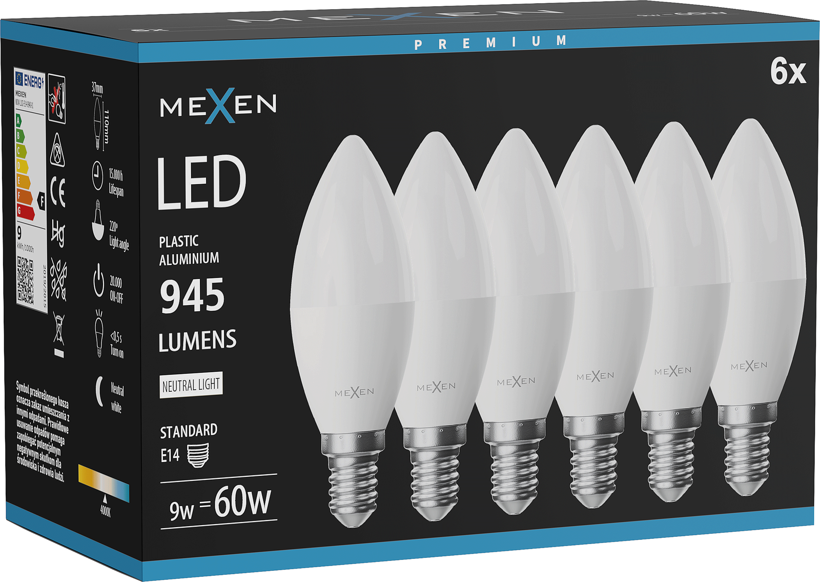 Mexen Nova 6x LED Lemputė E14, C37, 9W, Neutralus - 4000K, 945 lm - L102-E14-0940-01x06