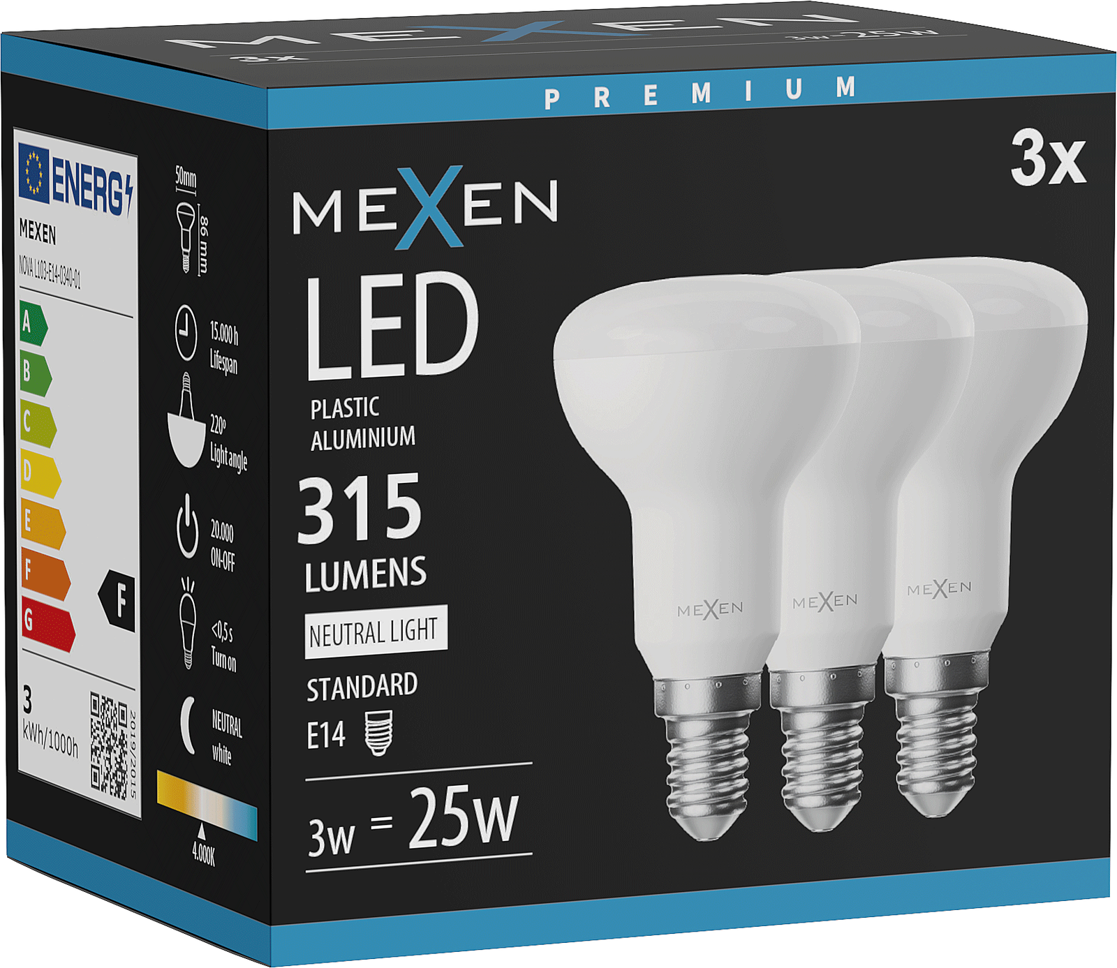 Mexen Nova 3x LED lemputė E14, R50, 3W, Neutrali - 4000K, 315 lm - L103-E14-0340-01x03