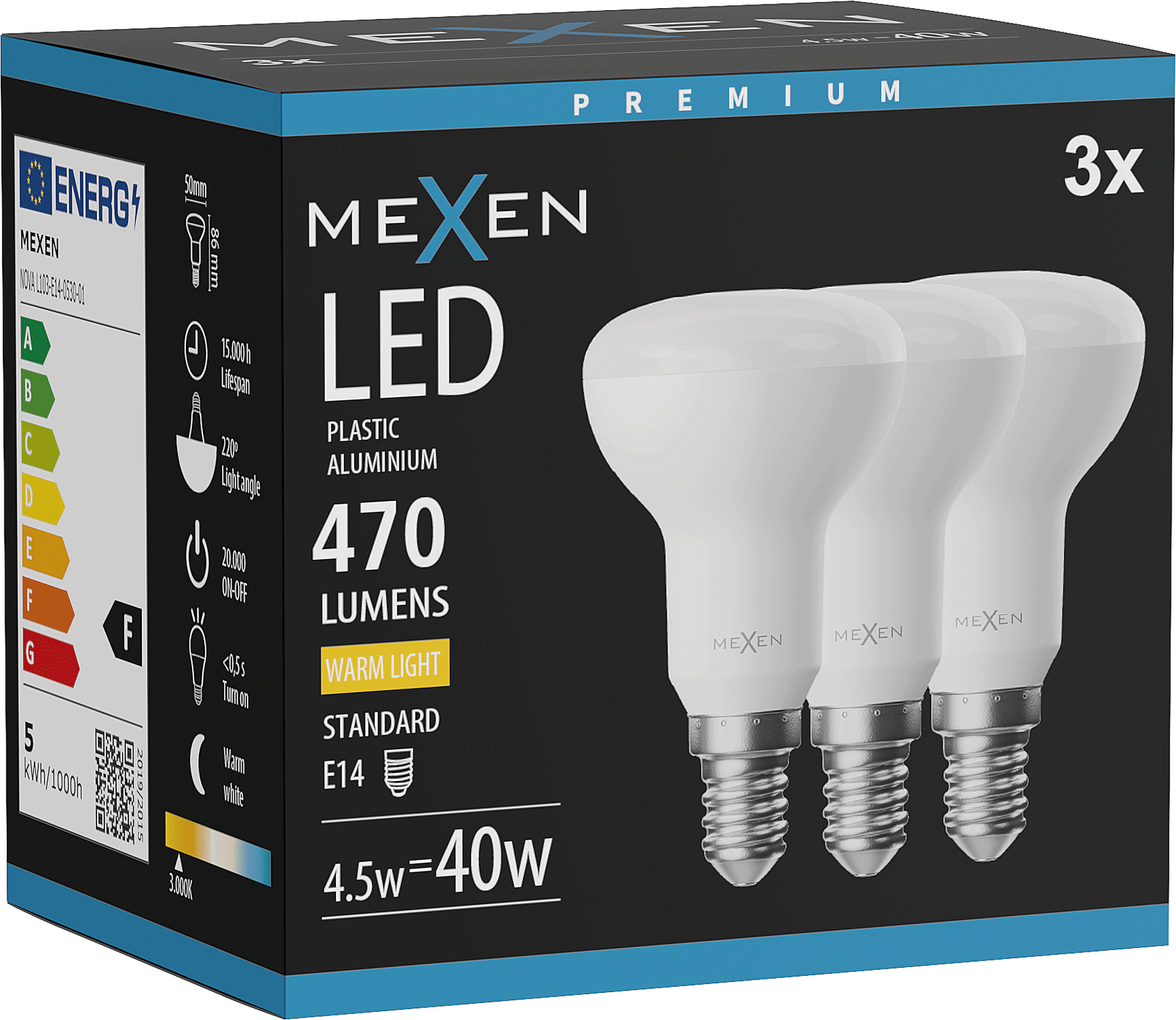 Mexen Nova 3x LED lemputė E14, R50, 4,5W, Šilta - 3000K, 470 lm - L103-E14-0530-01x03
