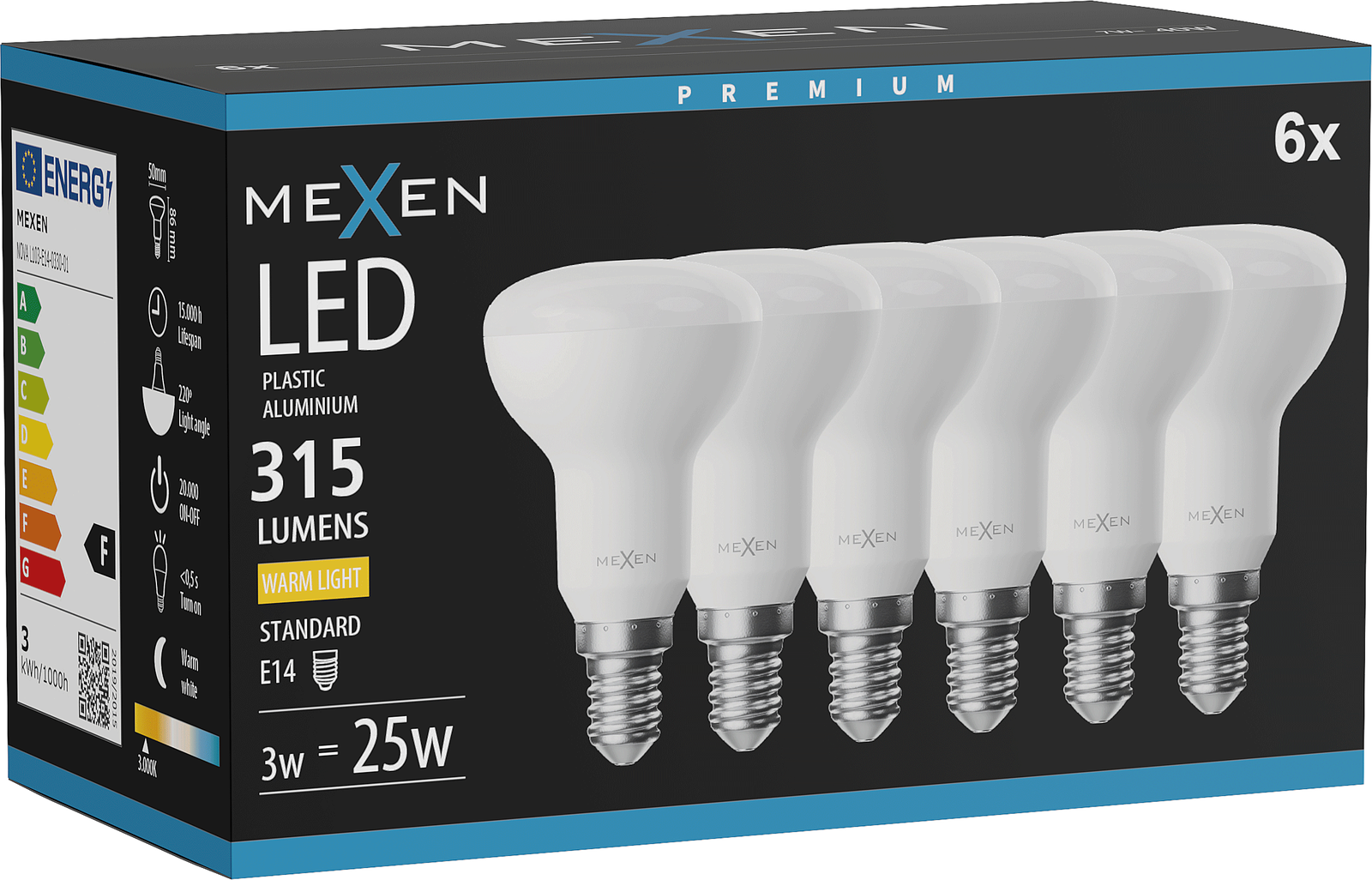 Mexen Nova 6x LED lemputė E14, R50, 3W, Šilta - 3000K, 315 lm - L103-E14-0330-01x06