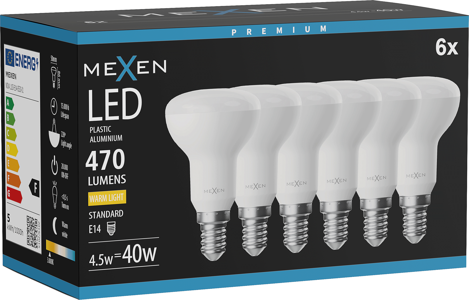 Mexen Nova 6x LED lemputė E14, R50, 4,5W, Šilta - 3000K, 470 lm - L103-E14-0530-01x06