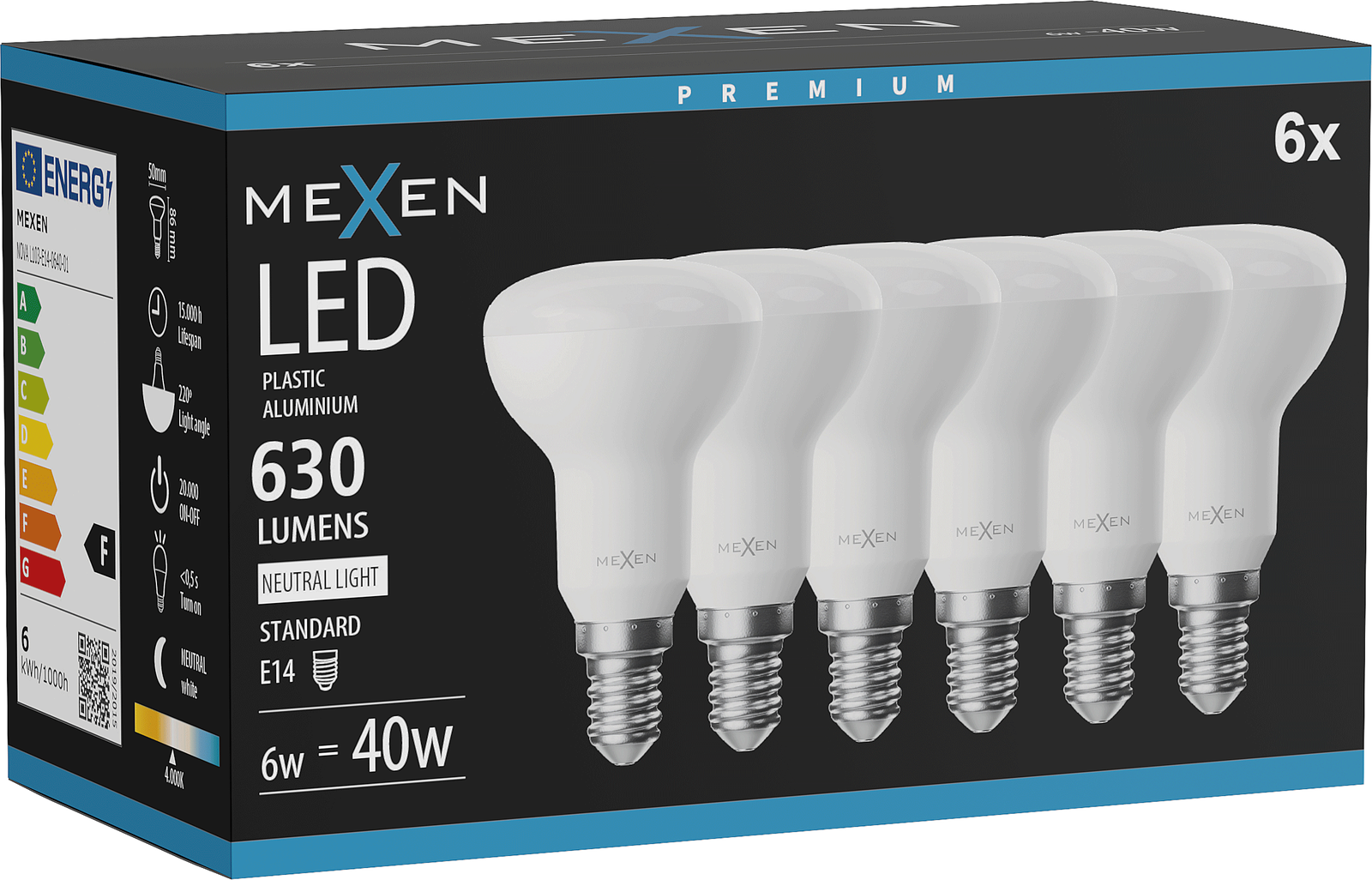 Mexen Nova 6x LED lemputė E14, R50, 6W, Neutralus - 4000K, 630 lm - L103-E14-0640-01x06