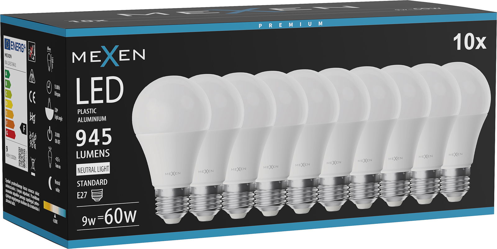 Mexen Nova 10x LED lemputė E27, A60, 9W, Neutrali - 4000K, 945 lm - L100-E27-0940-01x10