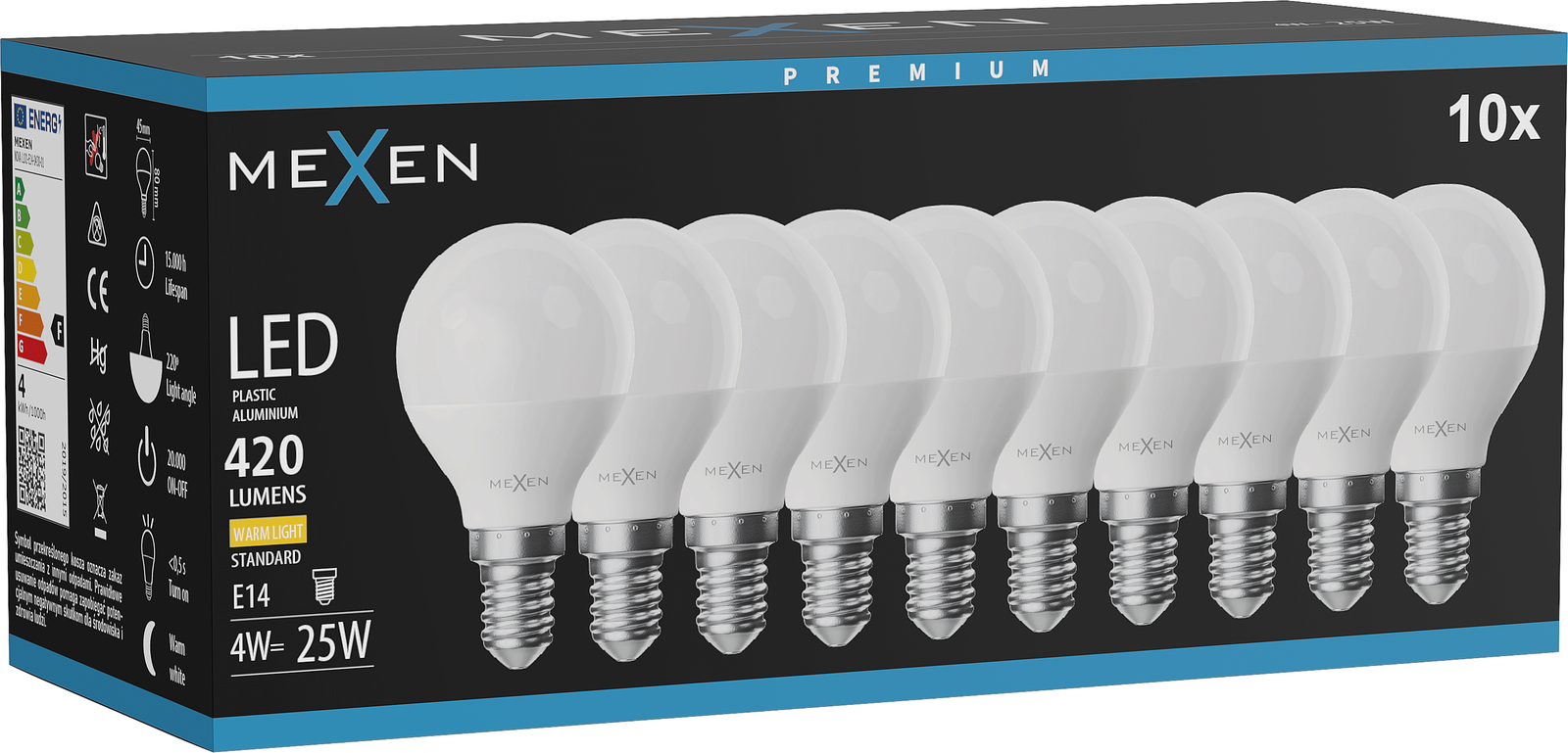 Mexen Nova 10x LED lemputė E14, G45, 4W, Šilta - 3000K, 420 lm - L101-E14-0430-01x10