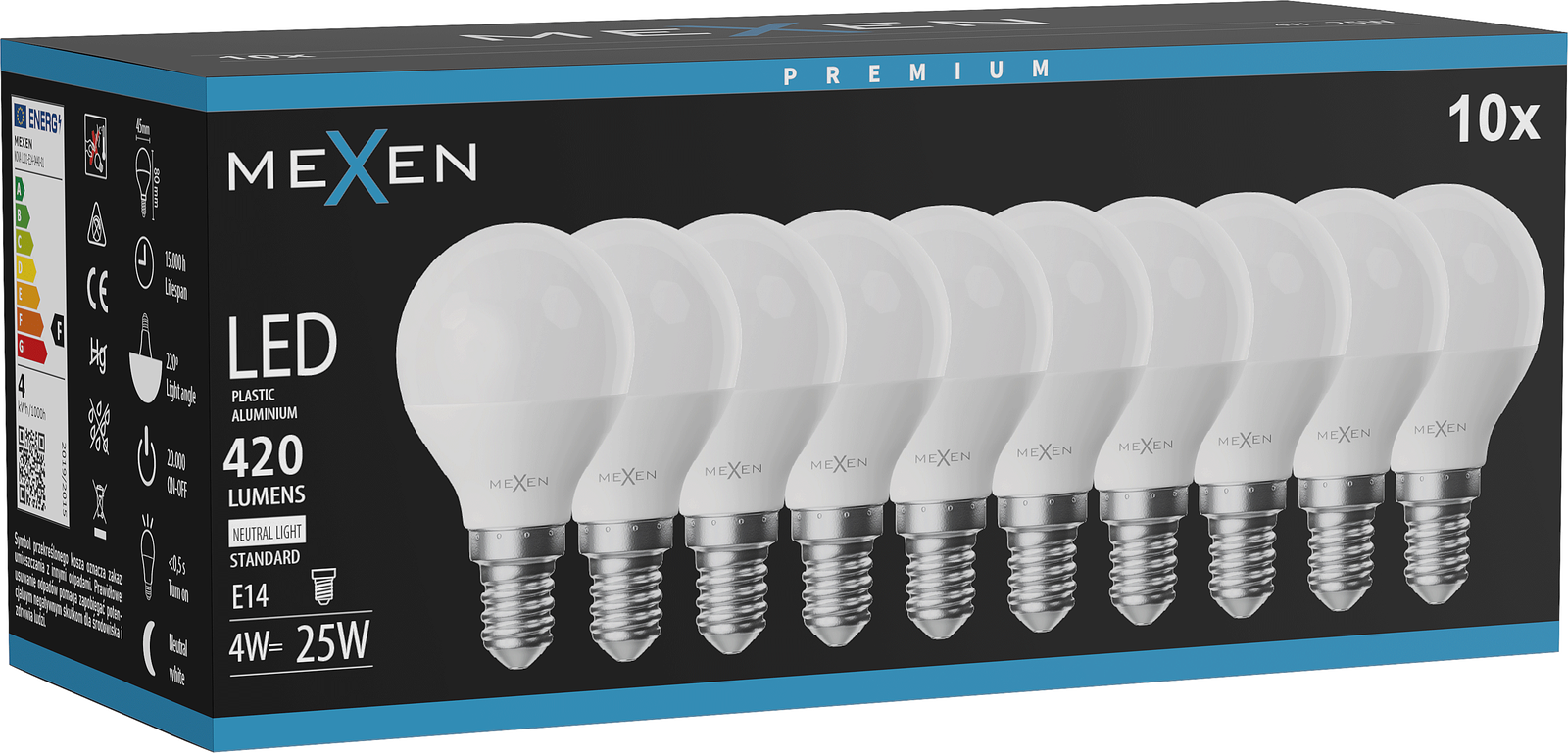 Mexen Nova 10x LED lemputė E14, G45, 4W, neutrali - 4000K, 420 lm - L101-E14-0440-01x10