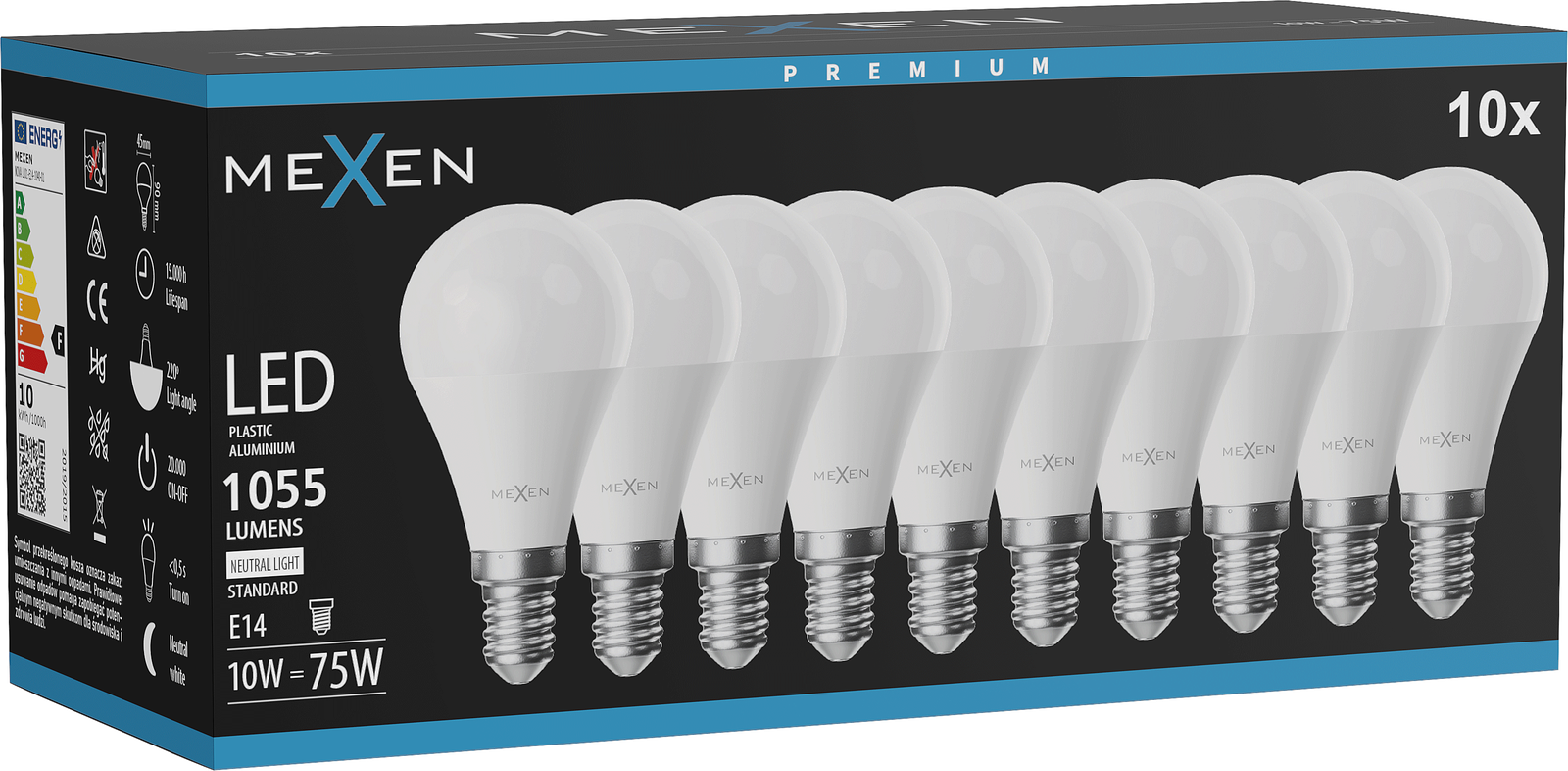 Mexen Nova 10x LED lemputė E14, G45, 10W, Neutralus - 4000K, 1055 lm - L101-E14-1040-01x10