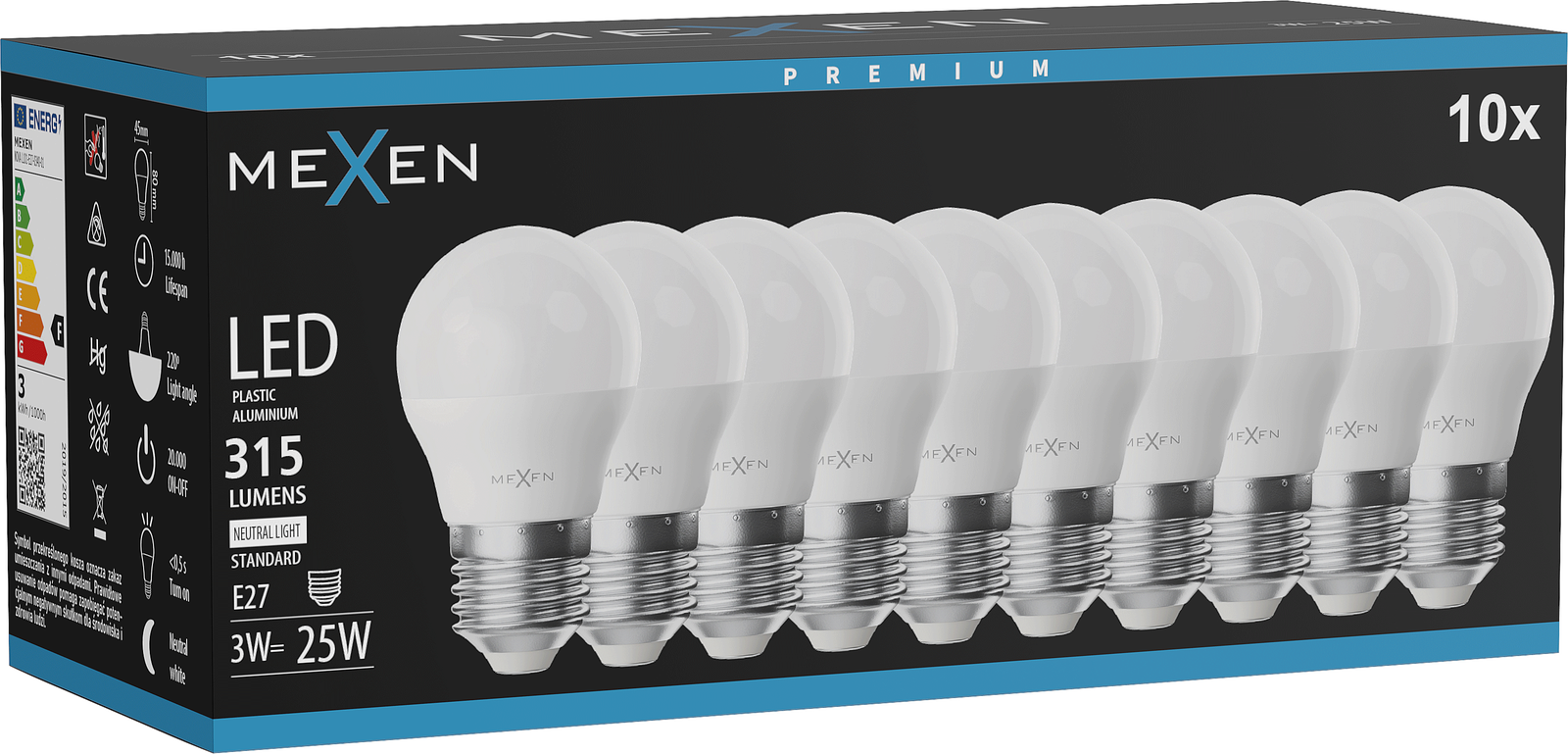 Mexen Nova 10x LED lemputė E27, G45, 3W, Neutrali - 4000K, 315 lm - L101-E27-0340-01x10