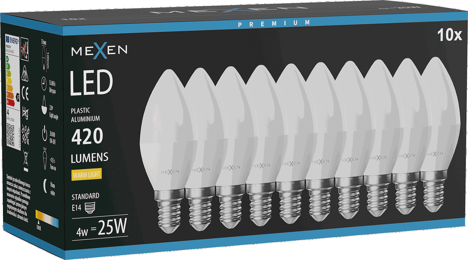 Mexen Nova 10x LED Lemputė E14, C37, 4W, Šilta - 3000K, 420 lm - L102-E14-0430-01x10