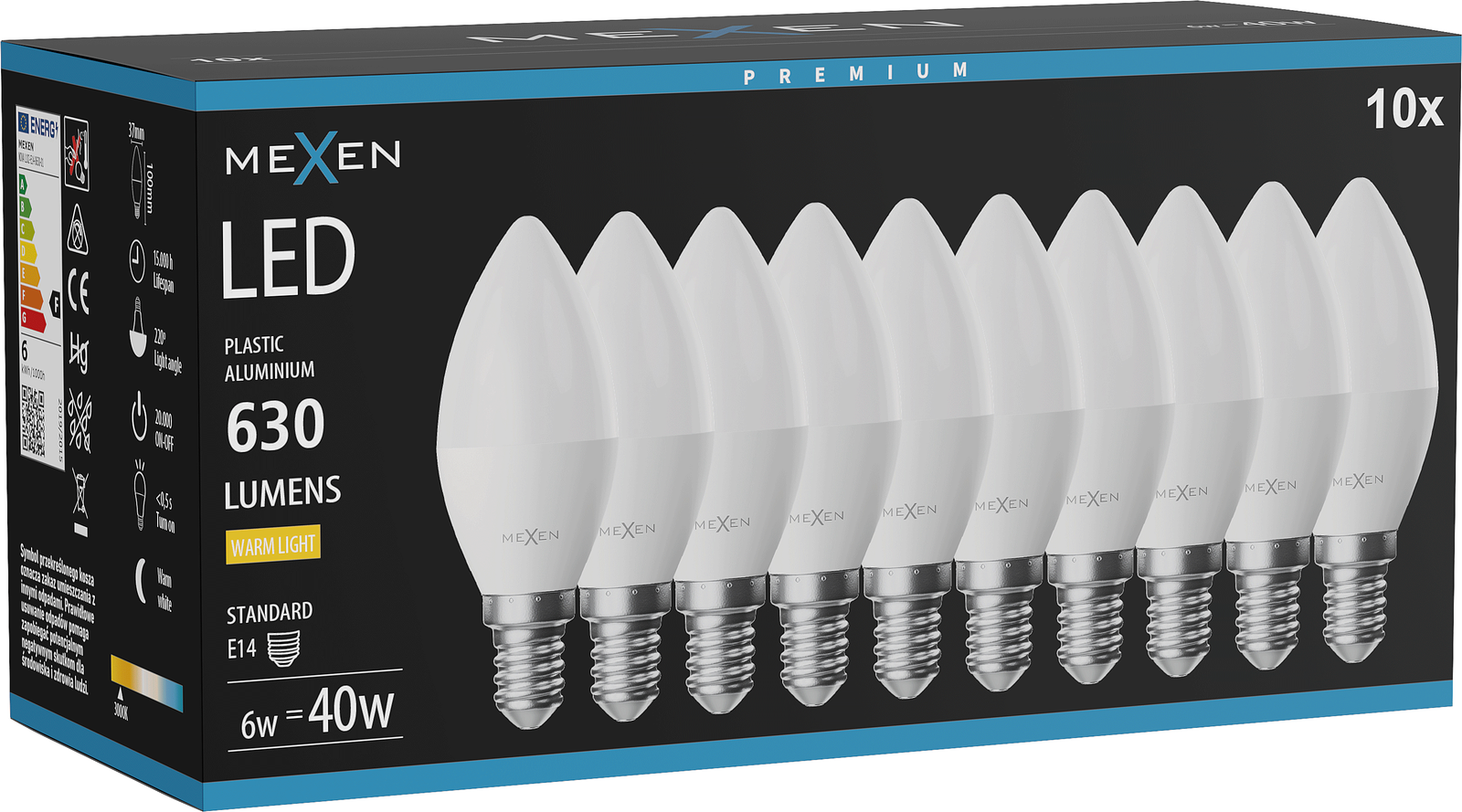 Mexen Nova 10x LED lemputė E14, C37, 6W, Šilta - 3000K, 630 lm - L102-E14-0630-01x10