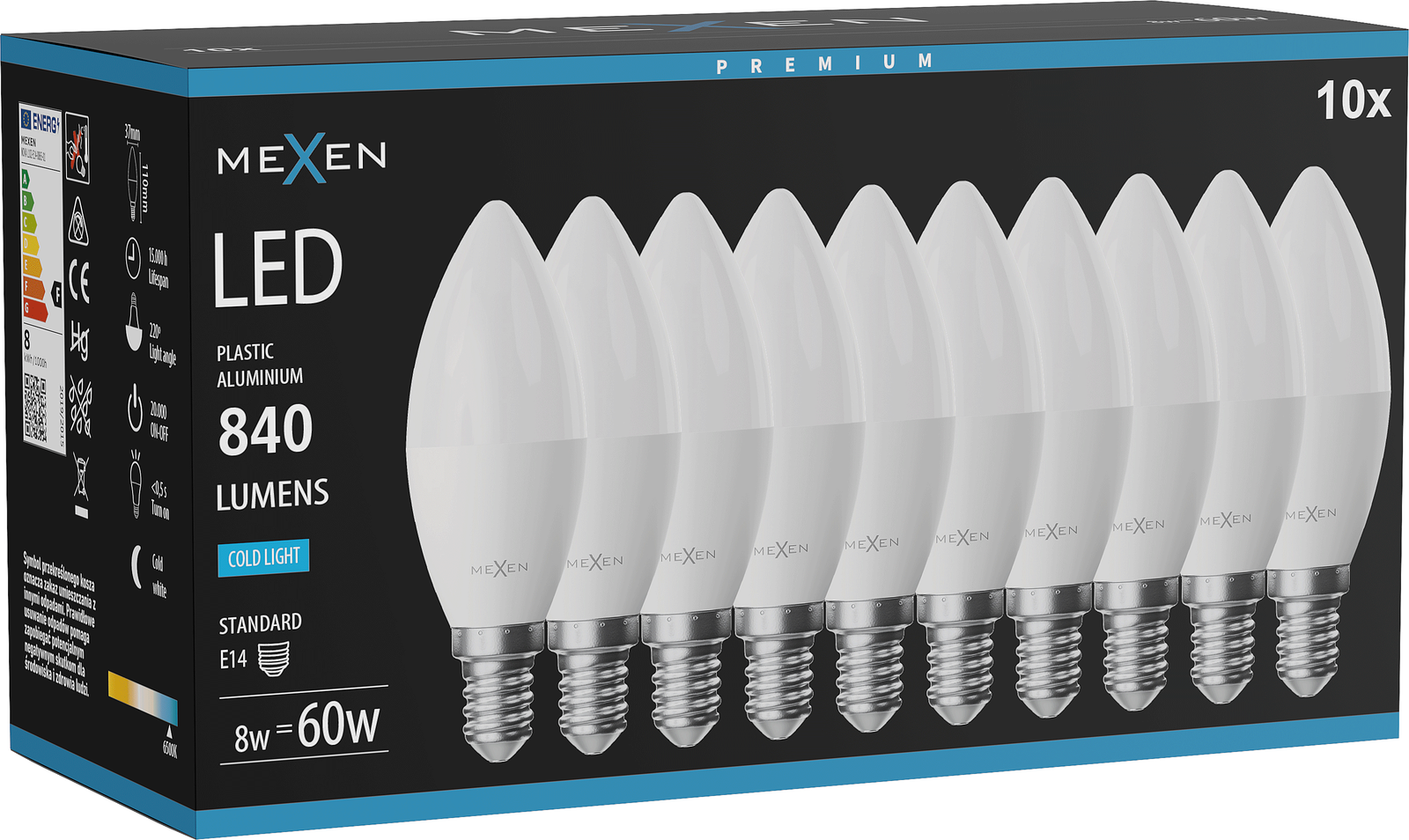 Mexen Nova 10x LED lemputė E14, C37, 8W, Šalta - 6500K, 840 lm - L102-E14-0865-01x10