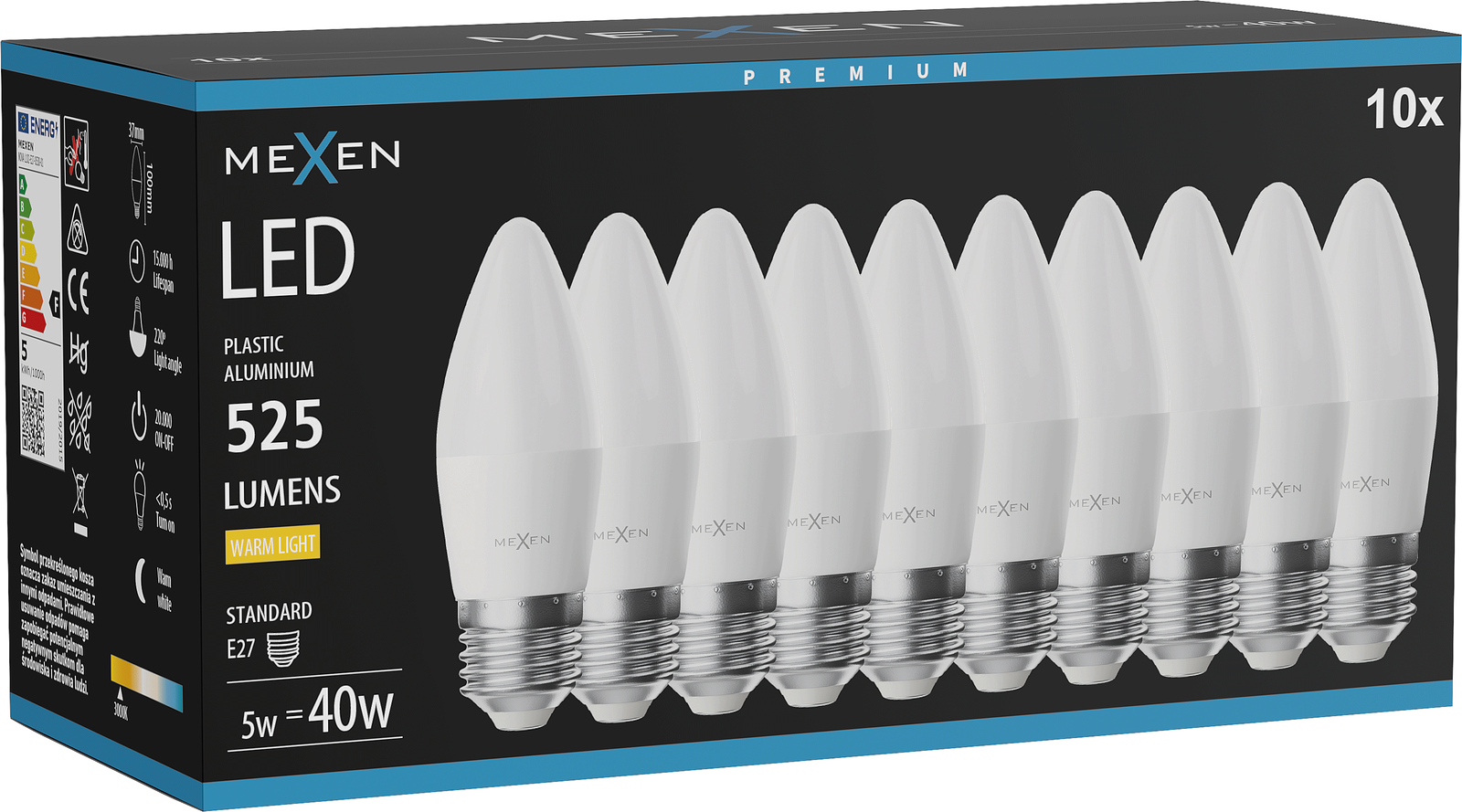 Mexen Nova 10x LED lemputė E27, C37, 5W, Šilta - 3000K, 525 lm - L102-E27-0530-01x10
