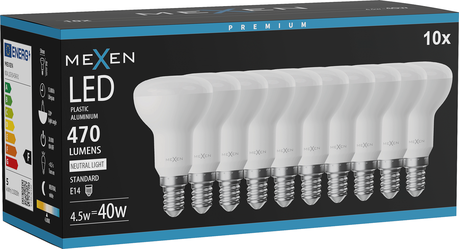 Mexen Nova 10x LED lemputė E14, R50, 4,5W, Neutralus - 4000K, 470 lm - L103-E14-0540-01x10