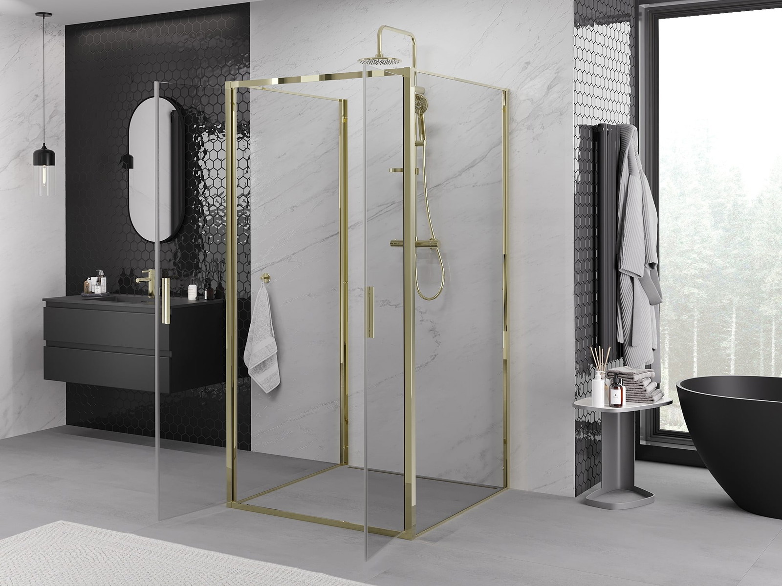Mexen Exo-3S yra išskirtinė dušo kabina, kurios matmenys yra 90x90 cm ir kuri puikiai tinka bet kuriai voniai dėl universalaus montavimo. Jos permatomas, grūdintas 6 mm stiklas su danga, palengvinančia valymą, užtikrina patvarumą ir estetiką. Auksinė apdaila suteikia elegancijos, o atveriamos durys suteikia patogų priėjimą. Mexen Exo-3S turi sienų nelygumų kompensavimo sistemą, pločio reguliavimą bei montavimo ant padėklo arba plytelių galimybę, kas padidina funkcionalumą.