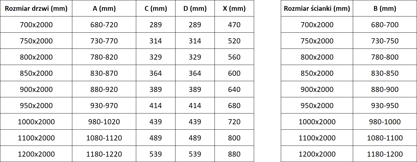 Dušo kabinos, durys ir sienelės yra standartiškai pritaikytos montuoti ant nustatytų matmenų dušo padėklų. Būtent šie matmenys nurodomi gaminio pavadinime arba aprašyme. Tačiau atkreipkite dėmesį, kad faktiniai elementų matmenys gali šiek tiek skirtis nuo vardinių verčių. Planuojant montuoti tiesiai ant grindų, rekomenduojama atidžiai patikrinti išorinius matmenis ir elementų išdėstymą pagal techninį brėžinį.