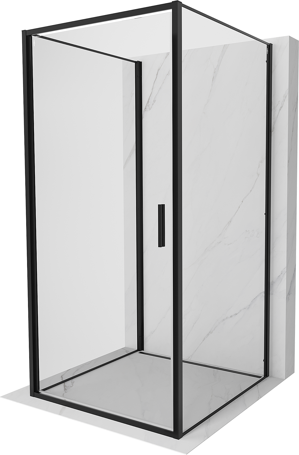 Mexen Exo-3S trijų sienų dušo kabina su atveriamomis durimis 85 x 85 cm, skaidri, juoda - 817-085-085-70-00-3S