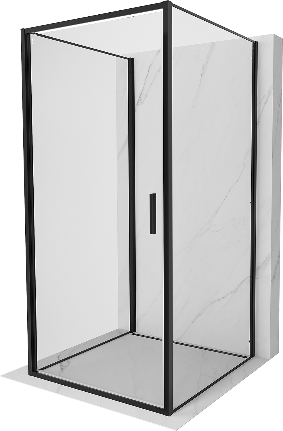 Mexen Exo-3S trijų sienų atidaroma dušo kabina 100 x 100 cm, skaidri, juoda - 817-100-100-70-00-3S