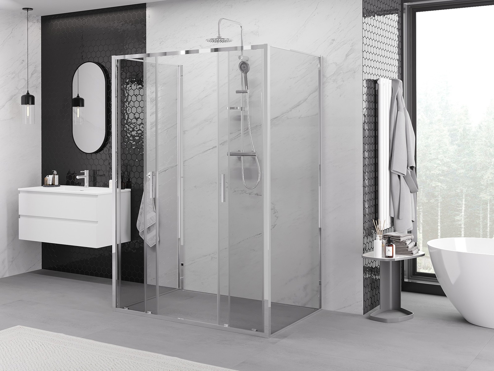 Mexen Exo-3S trijų sienų dušo kabina su stumdomomis durimis 150 x 80 cm, skaidri, chromuota - 8152-150-080-01-00-3S