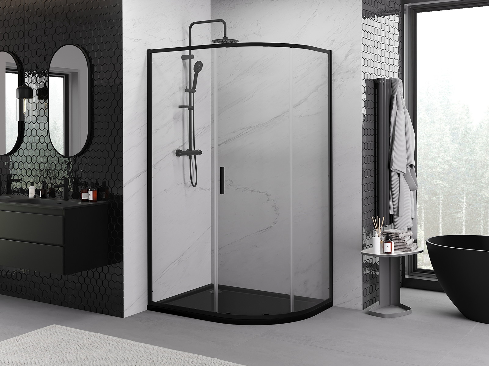 Produktą, atsižvelgiant į poreikius, galima sumontuoti tiek ant dušo padėklo, tiek tiesiogiai ant grindų. Universalus montavimo būdas leidžia pritaikyti produktą įvairių tipų vonios kambariams ir erdvės konfigūracijoms.