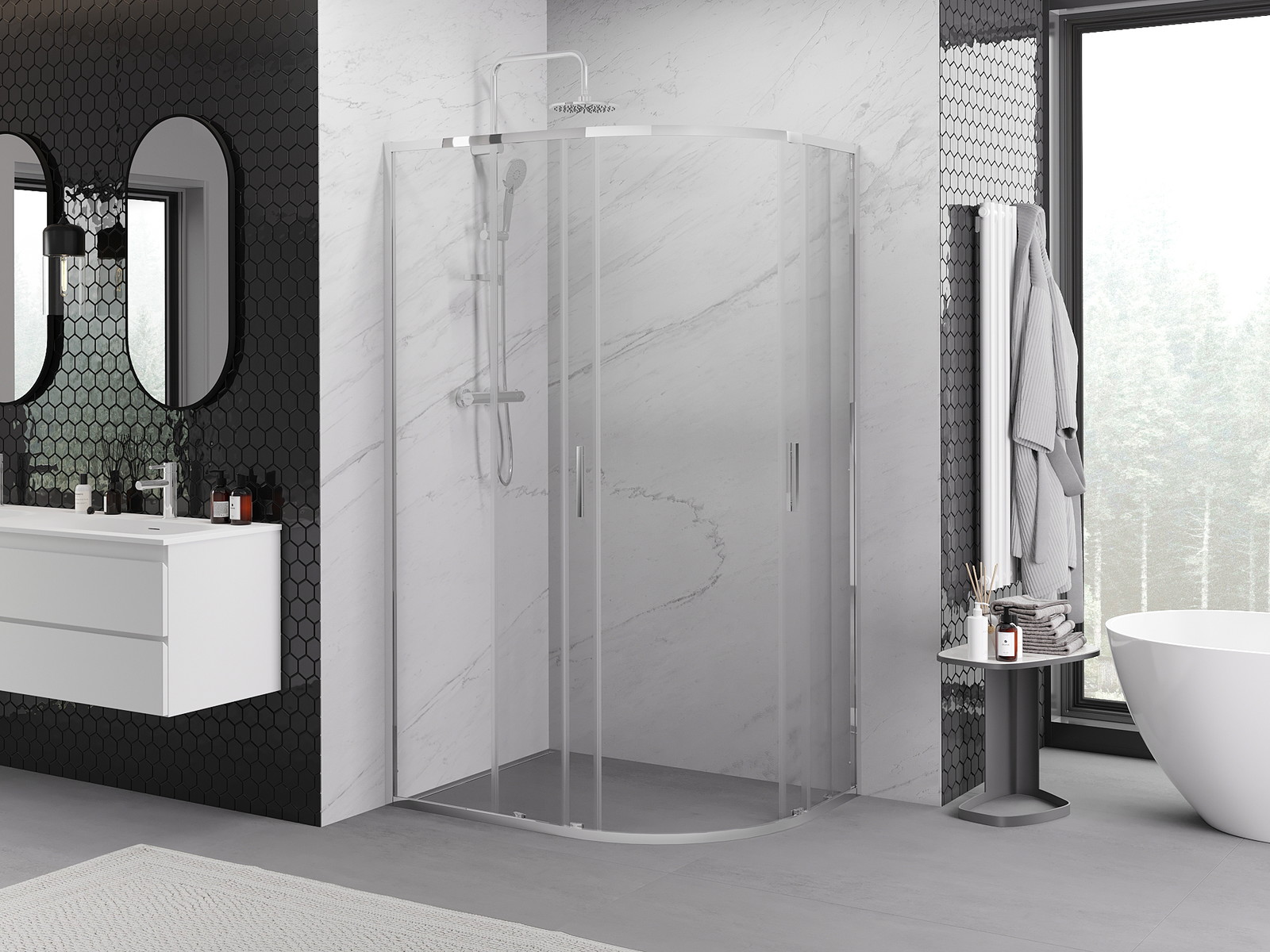 Mexen Exo asimetriška pusapvalė dušo kabina, stumiama, 120 x 80 cm, permatomas, chromas - 8132-120-080-01-00