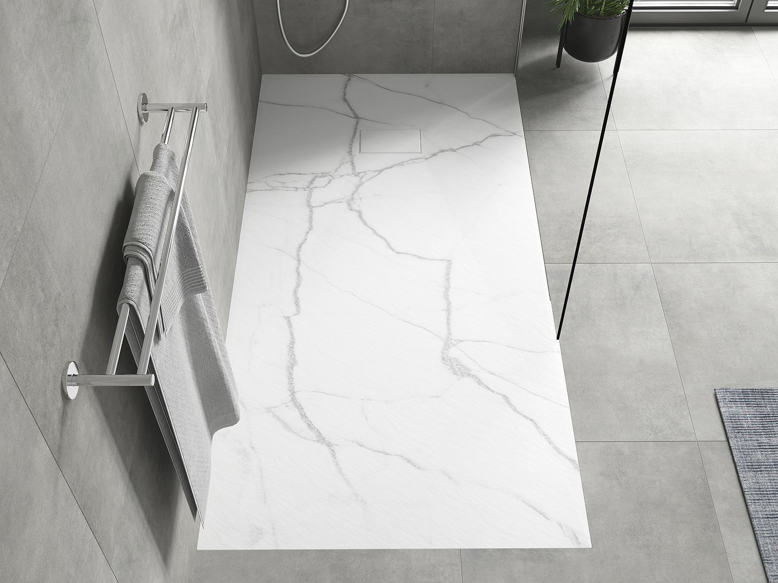 Kiekvienas dušo padėklas turi unikalų natūralaus akmens raštą