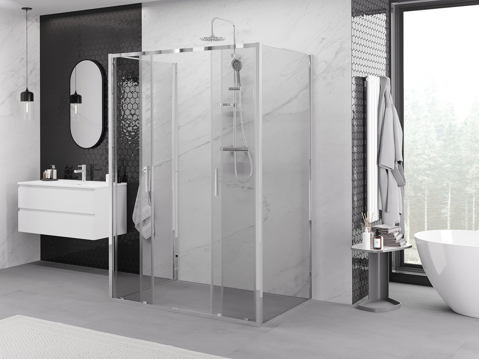 Mexen Exo-3S dušo kabina siūlo išskirtinį modernų dizainą ir funkcionalumo derinį. Jos matmenys 130x100 cm ir aukštis 200 cm puikiai tinka erdvesnėms vonioms. Dėl universalaus montavimo ir stumdomų durų, Mexen Exo-3S prisitaiko prie įvairių interjero išdėstymų. Permatomas, 6 mm storio grūdintas stiklas, chromo apdaila ir aliuminio profilis užtikrina ilgaamžiškumą ir eleganciją. Valymą palengvinanti danga ir tarpinių komplektas užtikrina lengvą švaros palaikymą. Tiek pločio reguliavimas, tiek galimybė montuoti ant paletės arba plytelių yra papildomi šios kabinos privalumai.