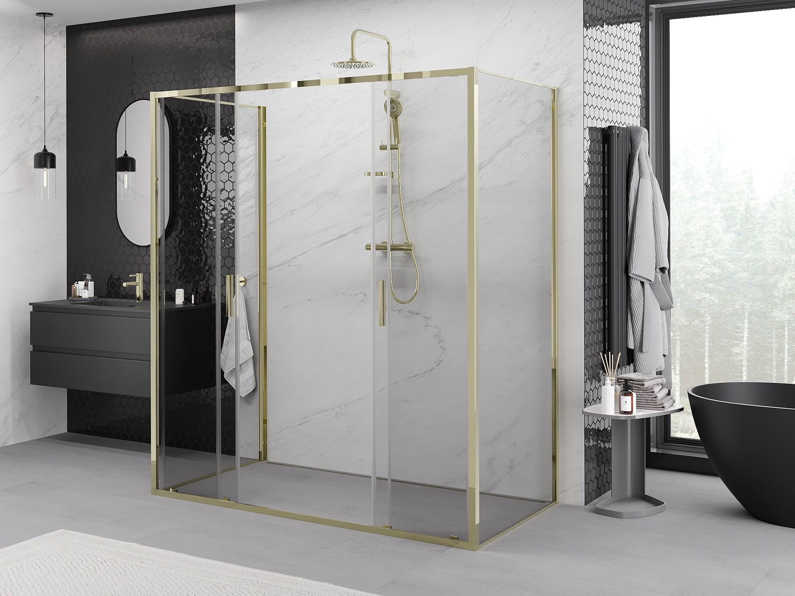 Mexen Exo-3S trijų sienelių dušo kabina su stumdomomis durimis 190 x 70 cm, skaidri, auksinė - 8152-190-070-50-00-3S