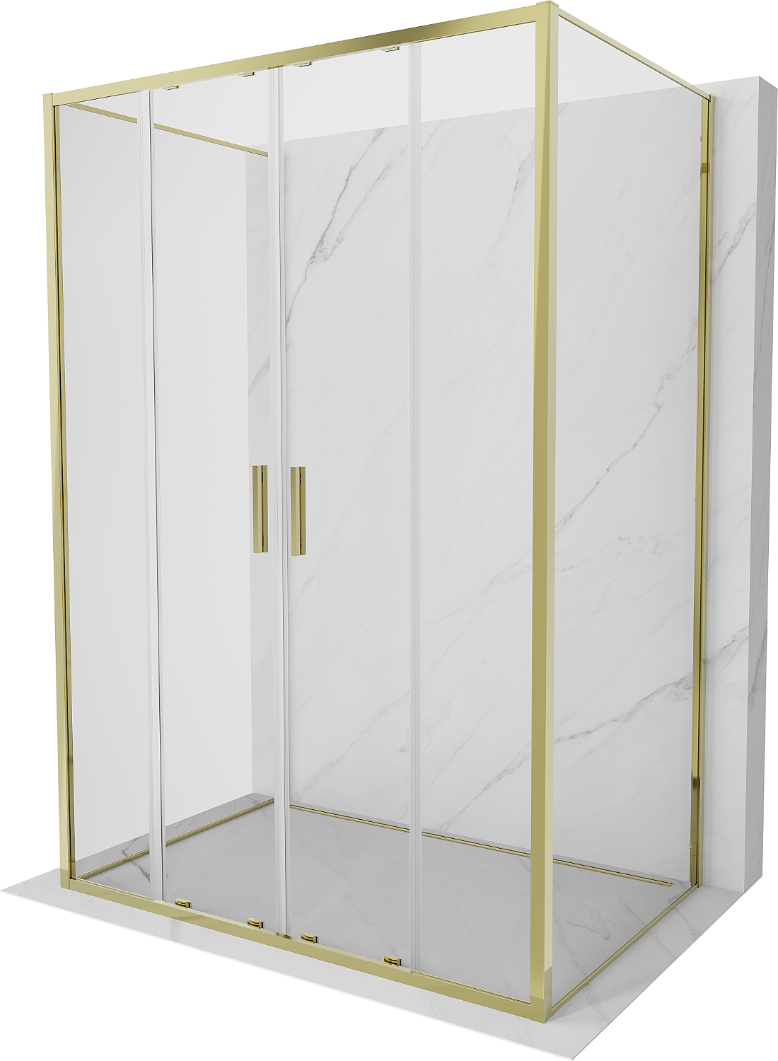 Mexen Exo-3S trijų sienelių stumdomas dušo kabinas, 140 x 100 cm, permatomas, auksinis - 8152-140-100-50-00-3S