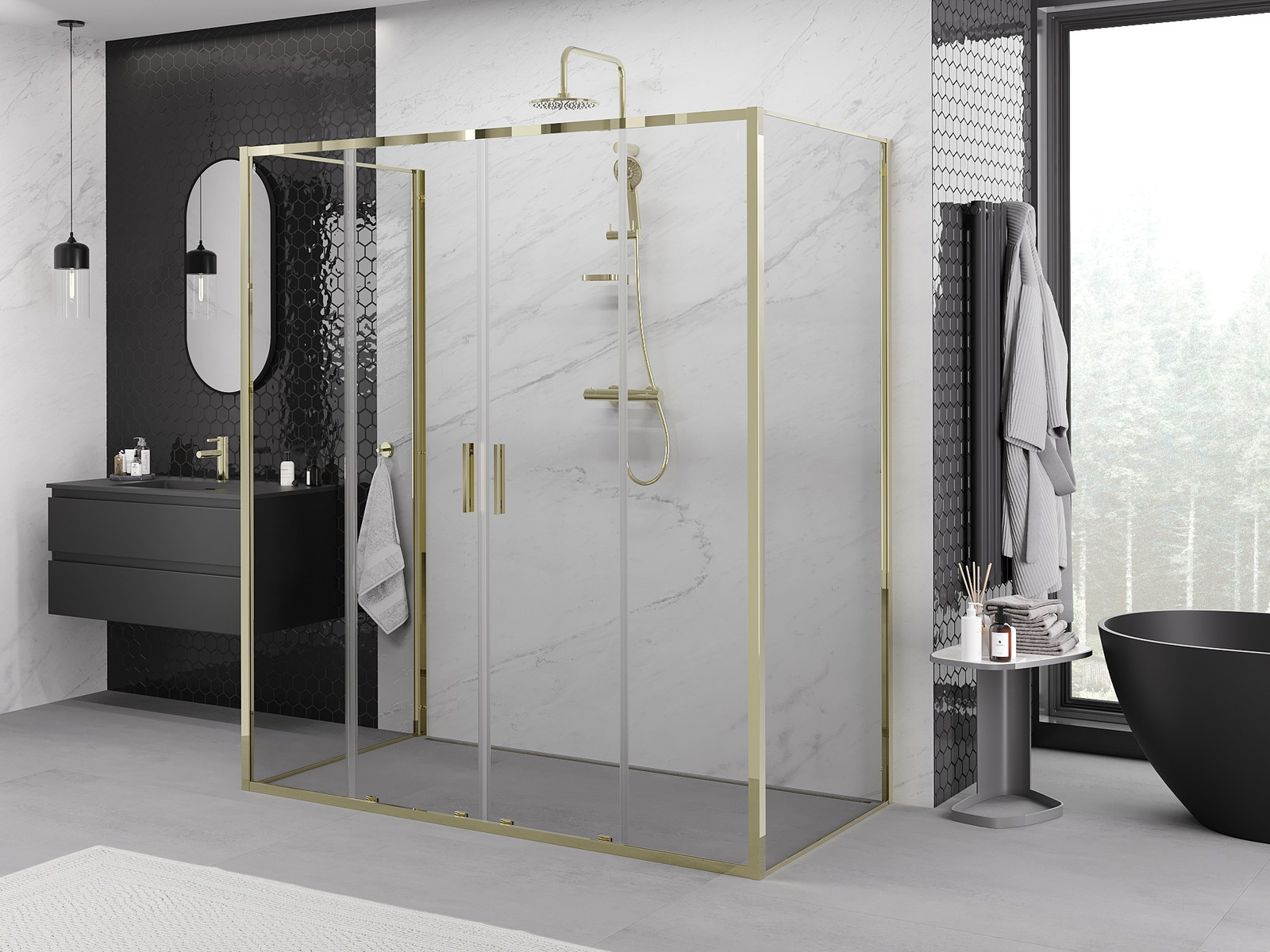 Mexen Exo-3S 3 sienų stumdomas dušo kabina 180 x 100 cm, permatomas, auksinis - 8152-180-100-50-00-3S