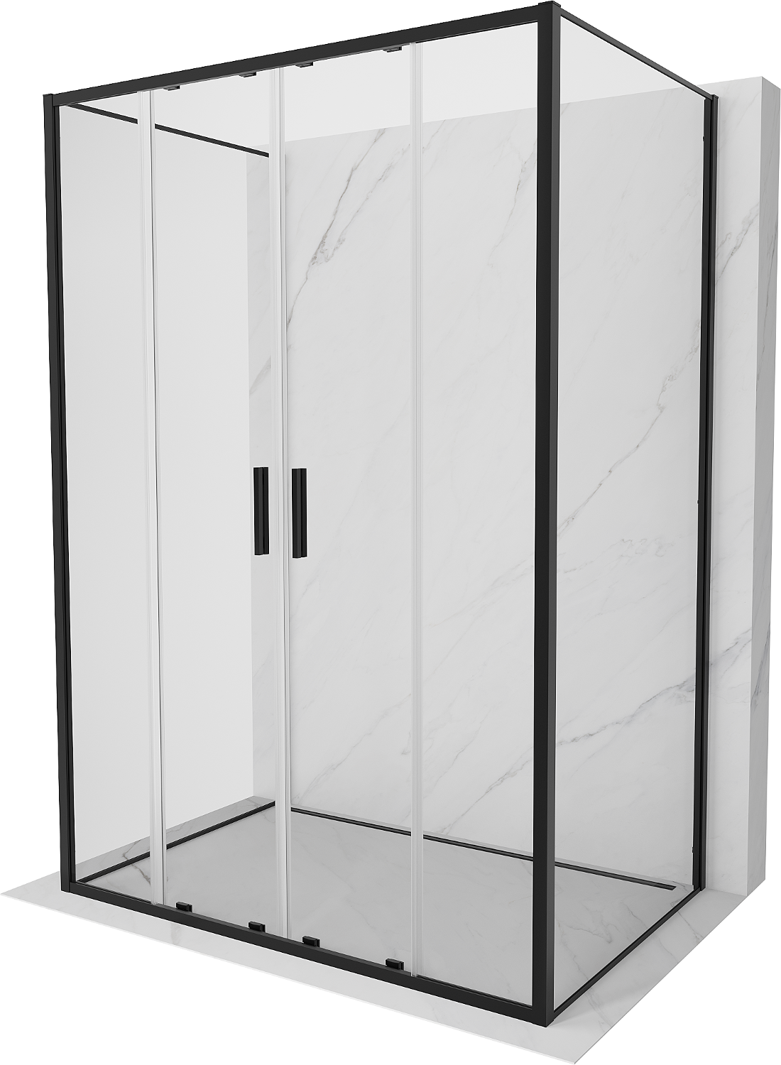 Mexen Exo-3S trijų sienų stumdomos dušo kabina 140 x 70 cm, skaidri, juoda - 8152-140-070-70-00-3S