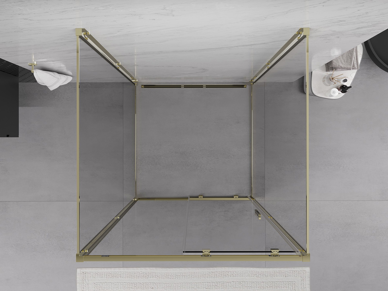 Mexen Exo-3S Trijų sienų stumdomas dušo kabinas 90 x 90 cm, skaidrus, auksinis - 8151-090-090-50-00-3S