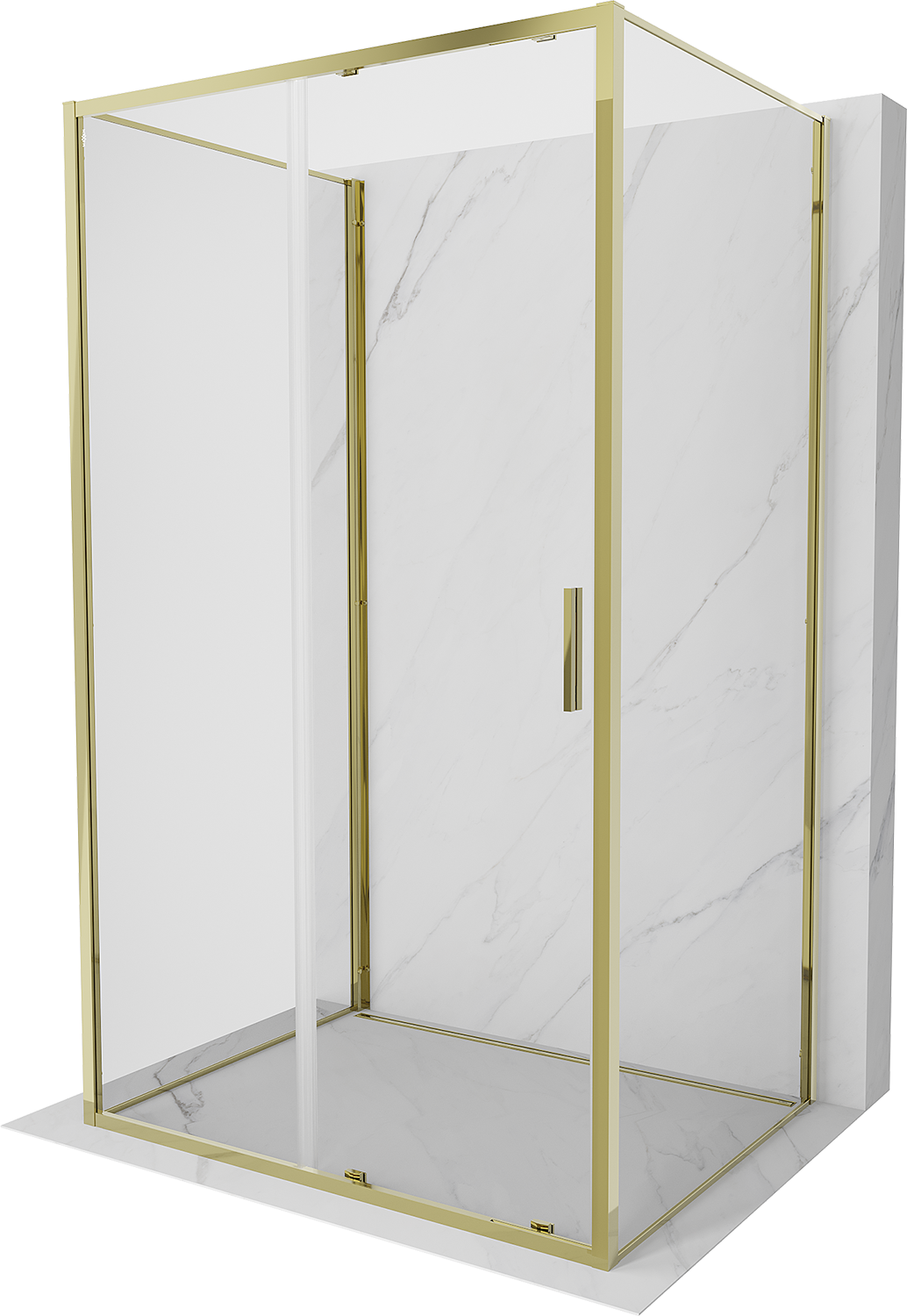 Mexen Exo-3S trijų dalių stumdomas dušas 145 x 120 cm, skaidrus, auksinis - 8151-145-120-50-00-3S